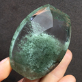 天然绿幽灵吊坠水滴形挂件墨绿色千层绿水晶山水画无事牌毛衣链女