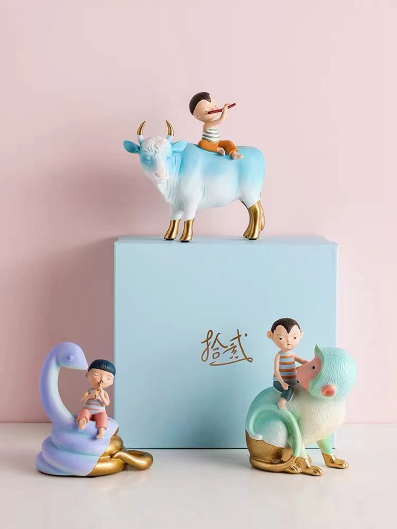 含泪清仓特价包邮礼盒装树脂生肖动物与男孩女孩摆饰生日圣诞礼物