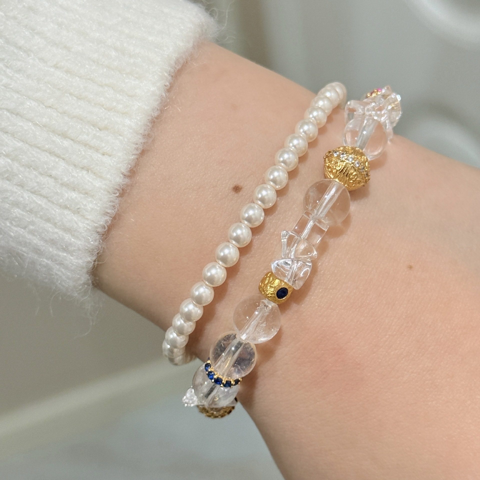 原创设计纯白梦境手链女小众高级感天然白水晶手串转运珠精致手饰