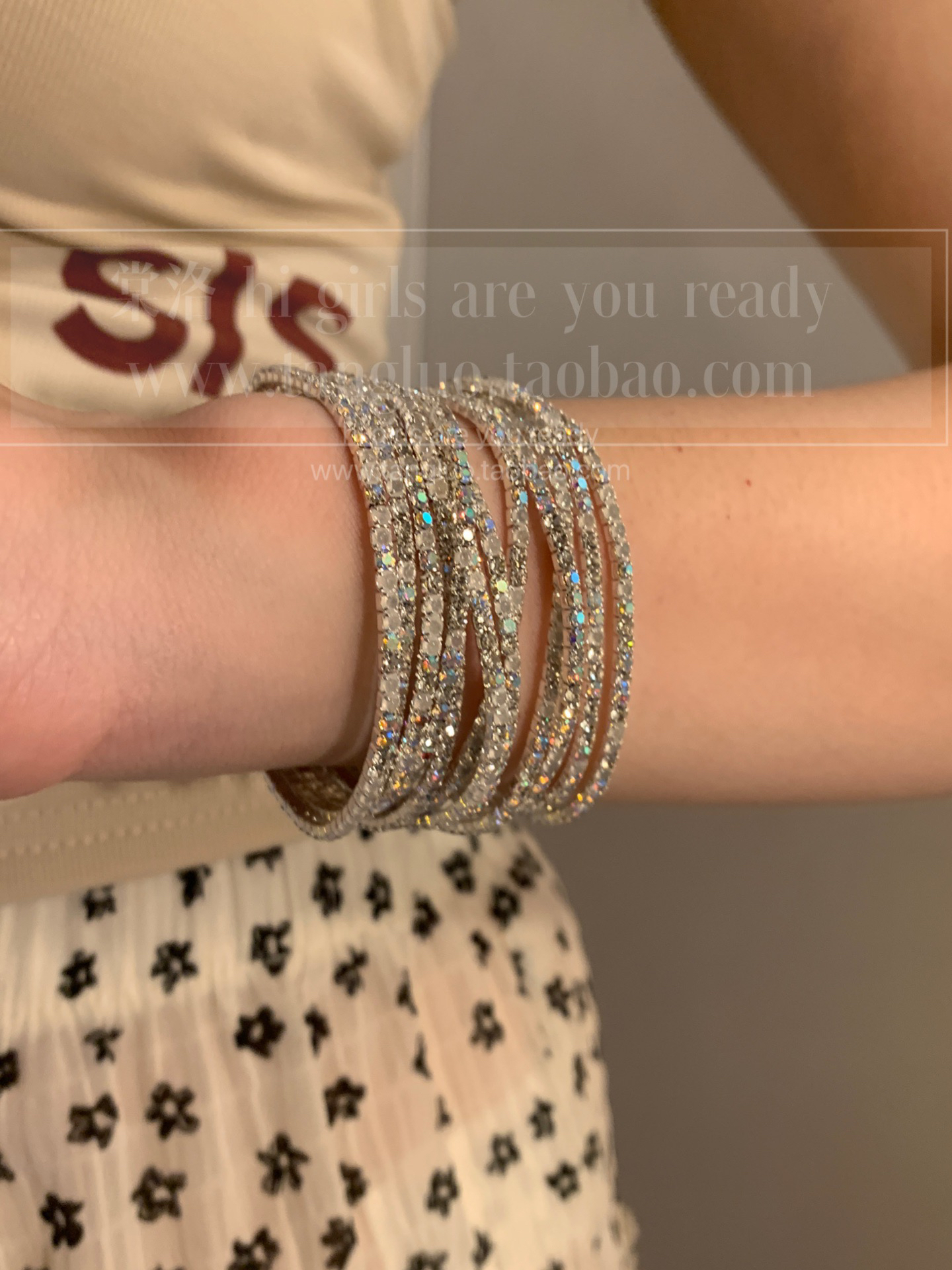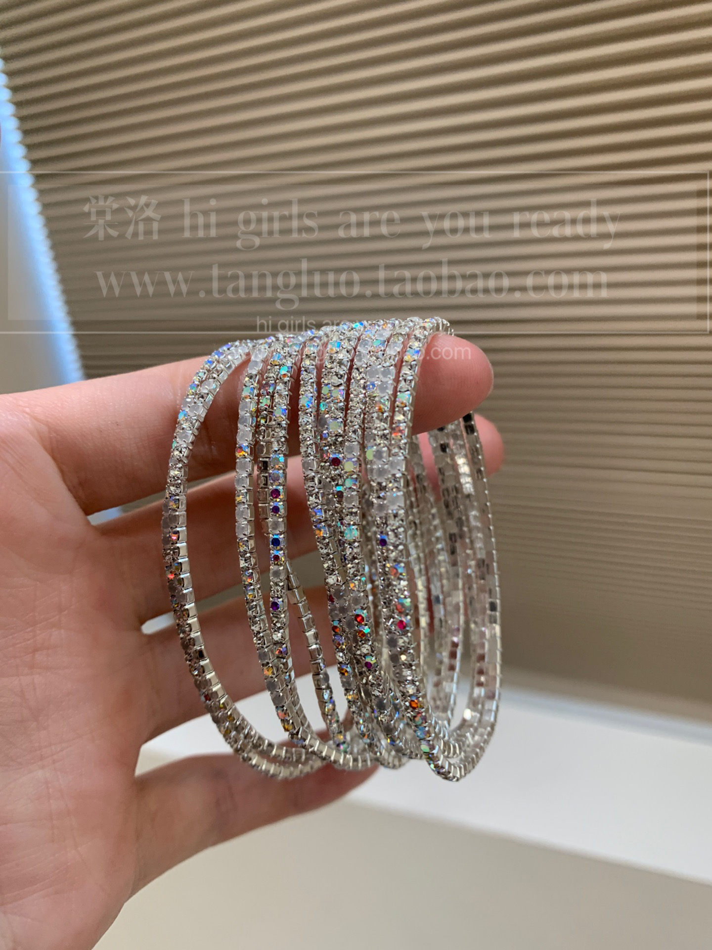 棠洛 欧美镶钻爆闪手链女彩色水钻手饰品叠戴手环春夏高级感2025