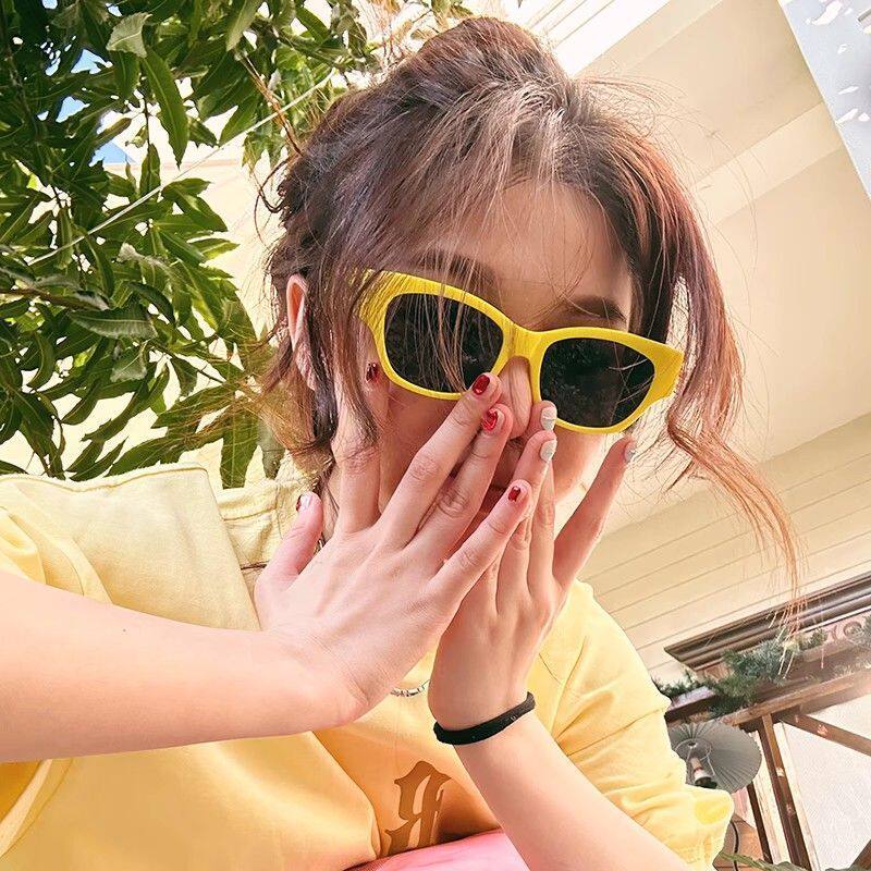 黄色方形Y2K甜酷辣妹墨镜女高级感遮阳防紫外线夏季海边太阳眼镜