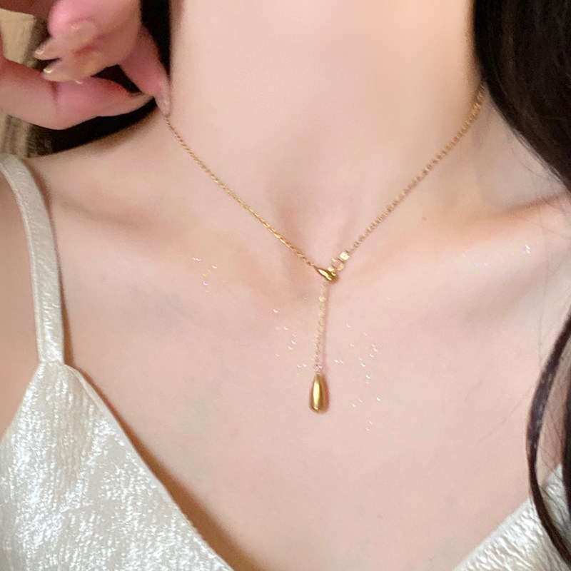 漂亮流苏~金色小水滴项链配饰女款钛钢项链高级感轻奢小众锁骨链