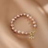 粉紫色天然珍珠手链女小众设计OT扣钻石小蜜蜂吊坠手饰手串
