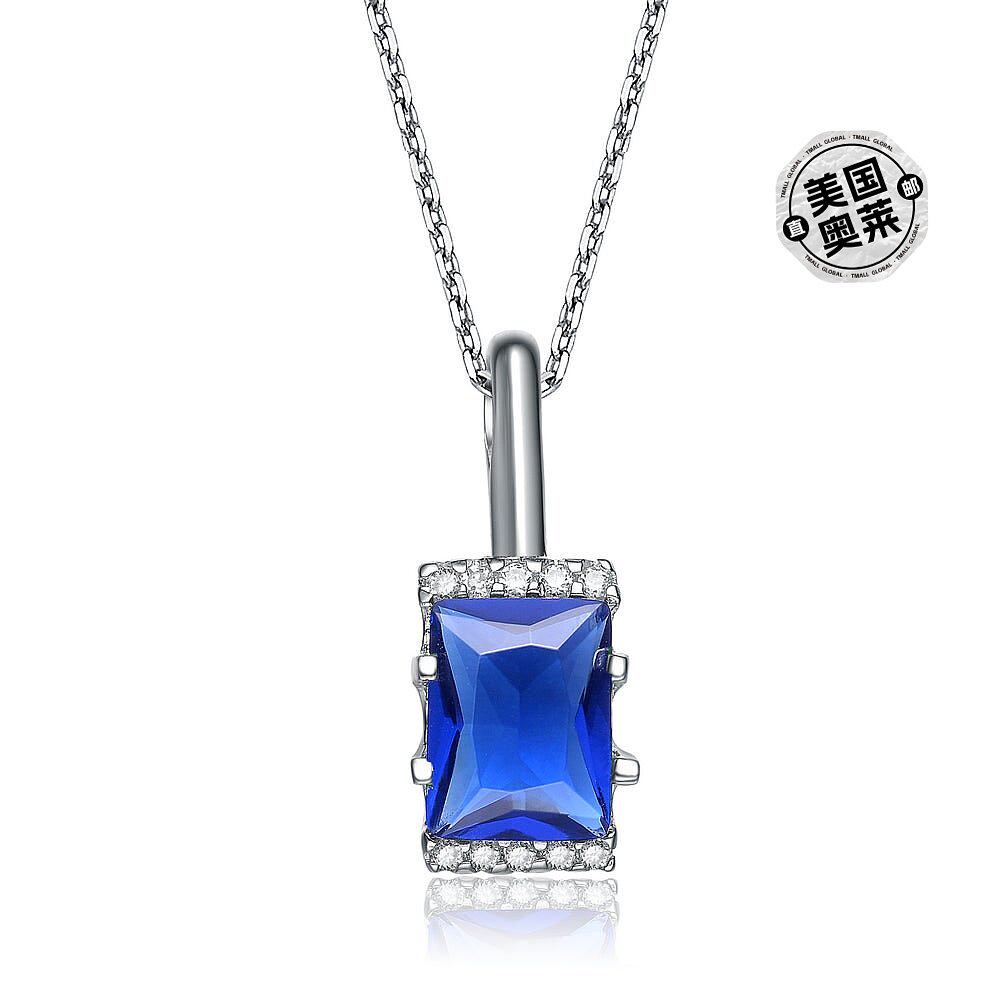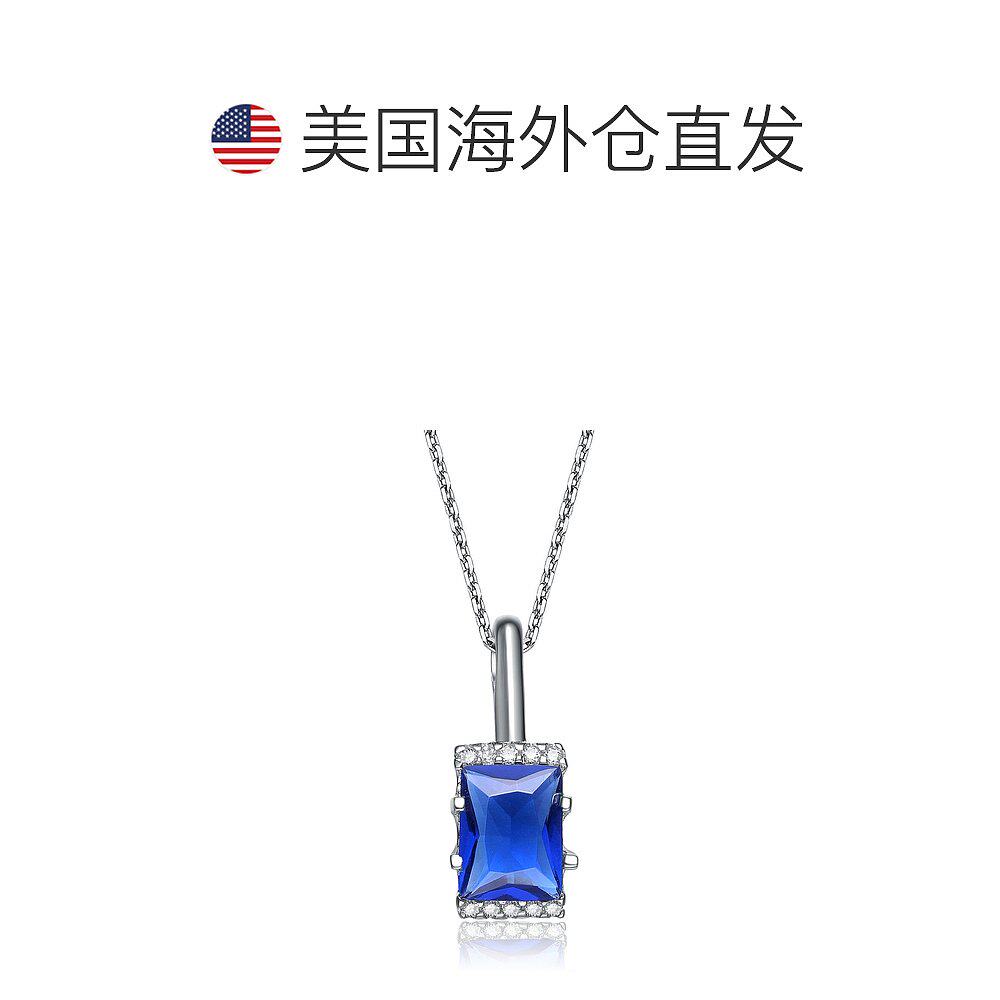自营 geneviveGv 纯银蓝白方晶锆石方形项链 - 蓝色 美国奥莱直发