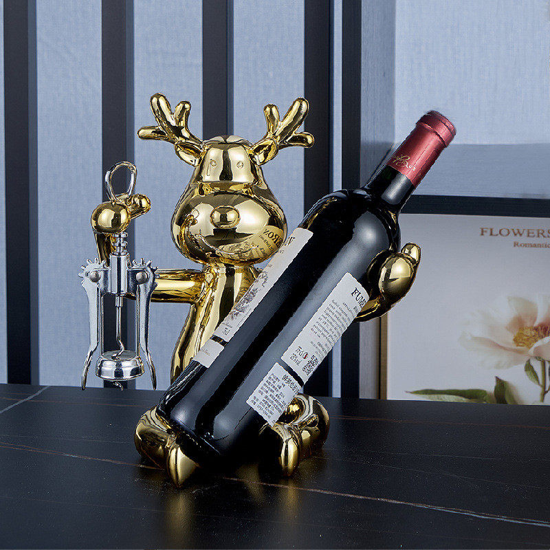 批发小鹿动物红酒架酒柜创意电视柜工艺品轻奢装饰风杯架树脂摆件