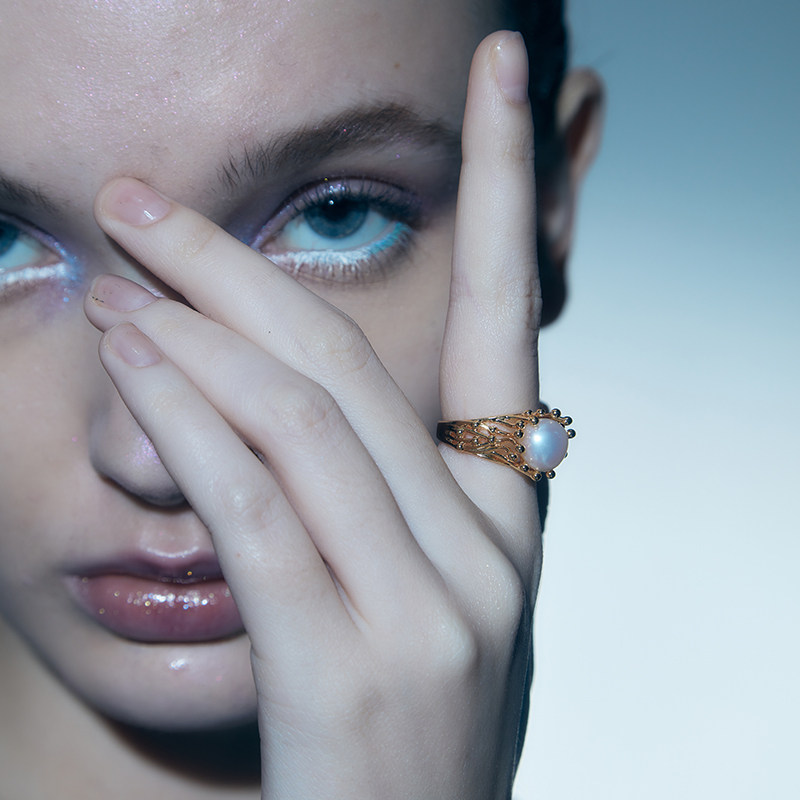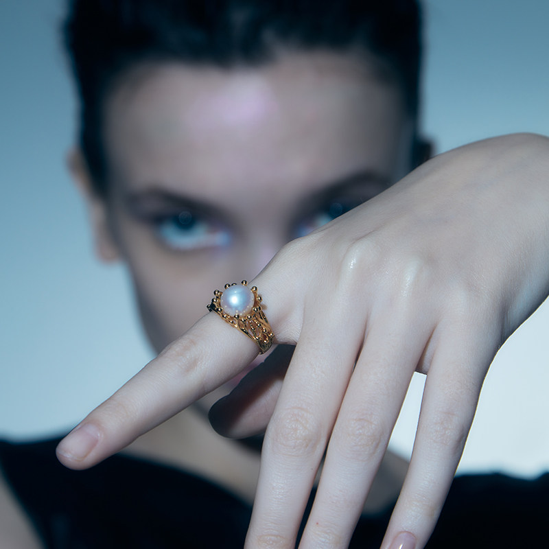 PEARLONA树突绽放巴洛克珍珠戒指女 原创轻奢小众设计指环新款金