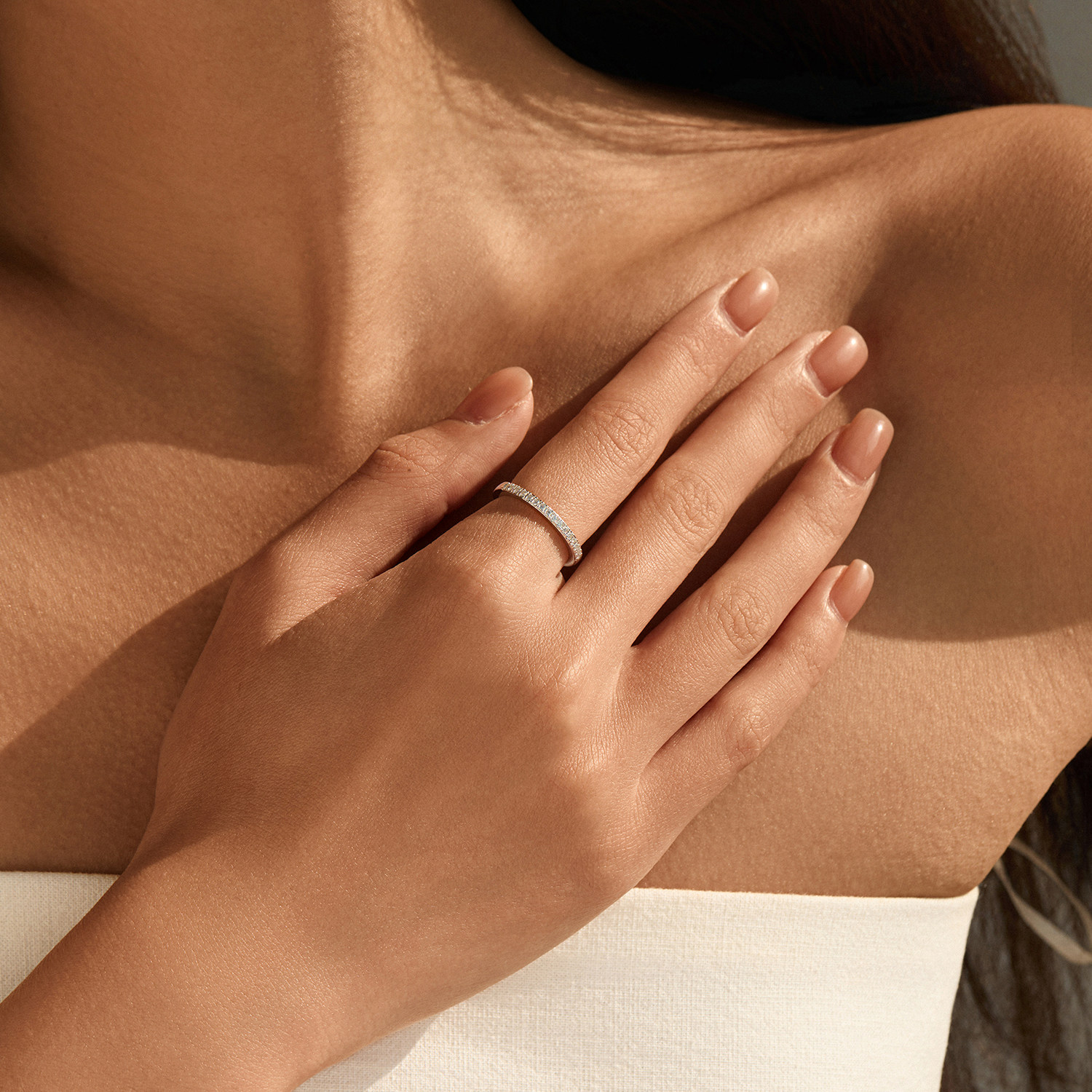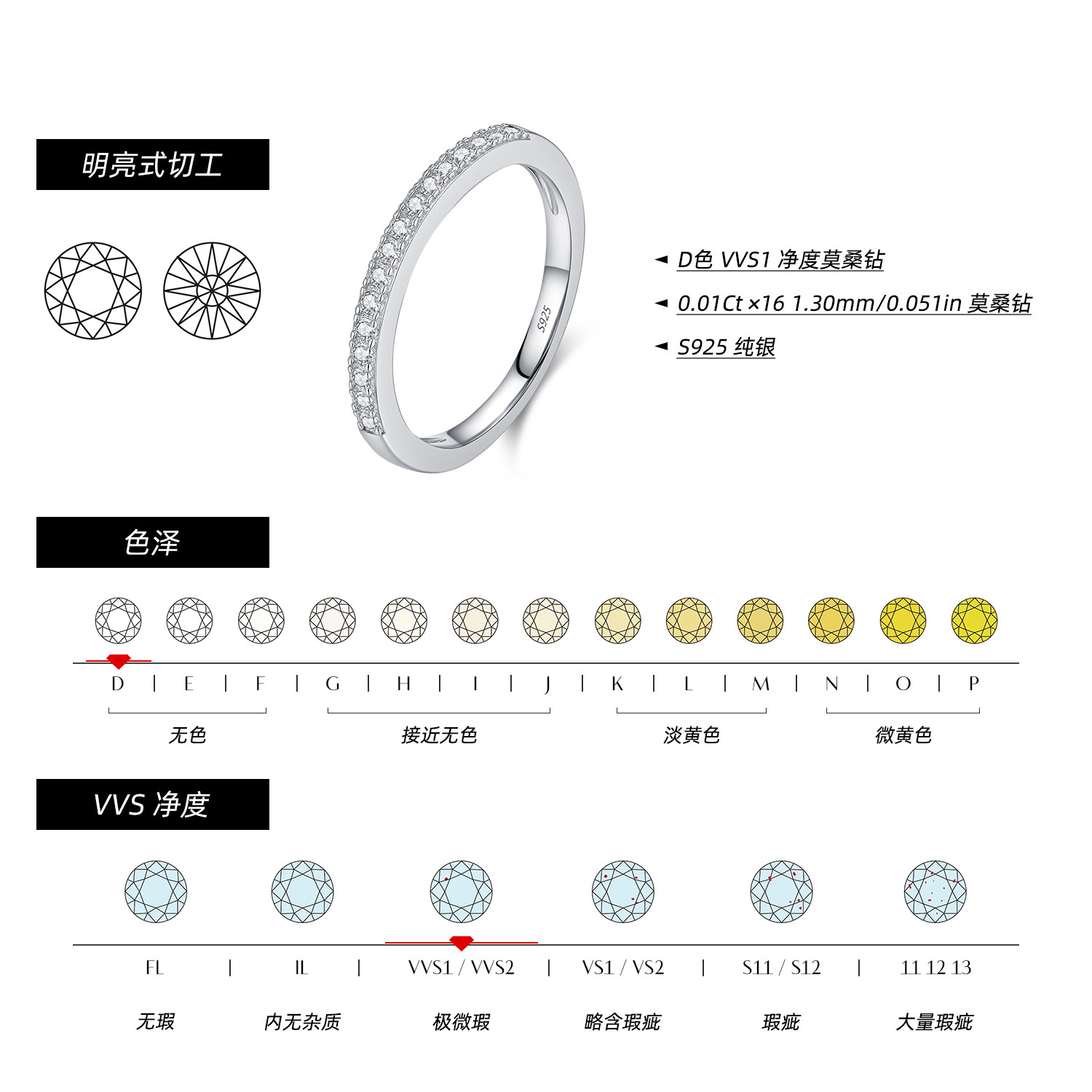 MODIAN摩典VVS1净度莫桑钻戒指女S925纯银轻奢高级感排钻叠戴指环