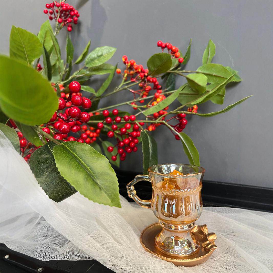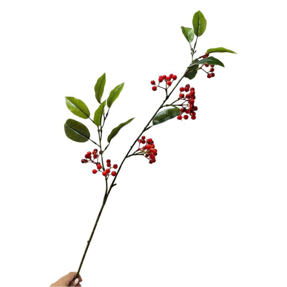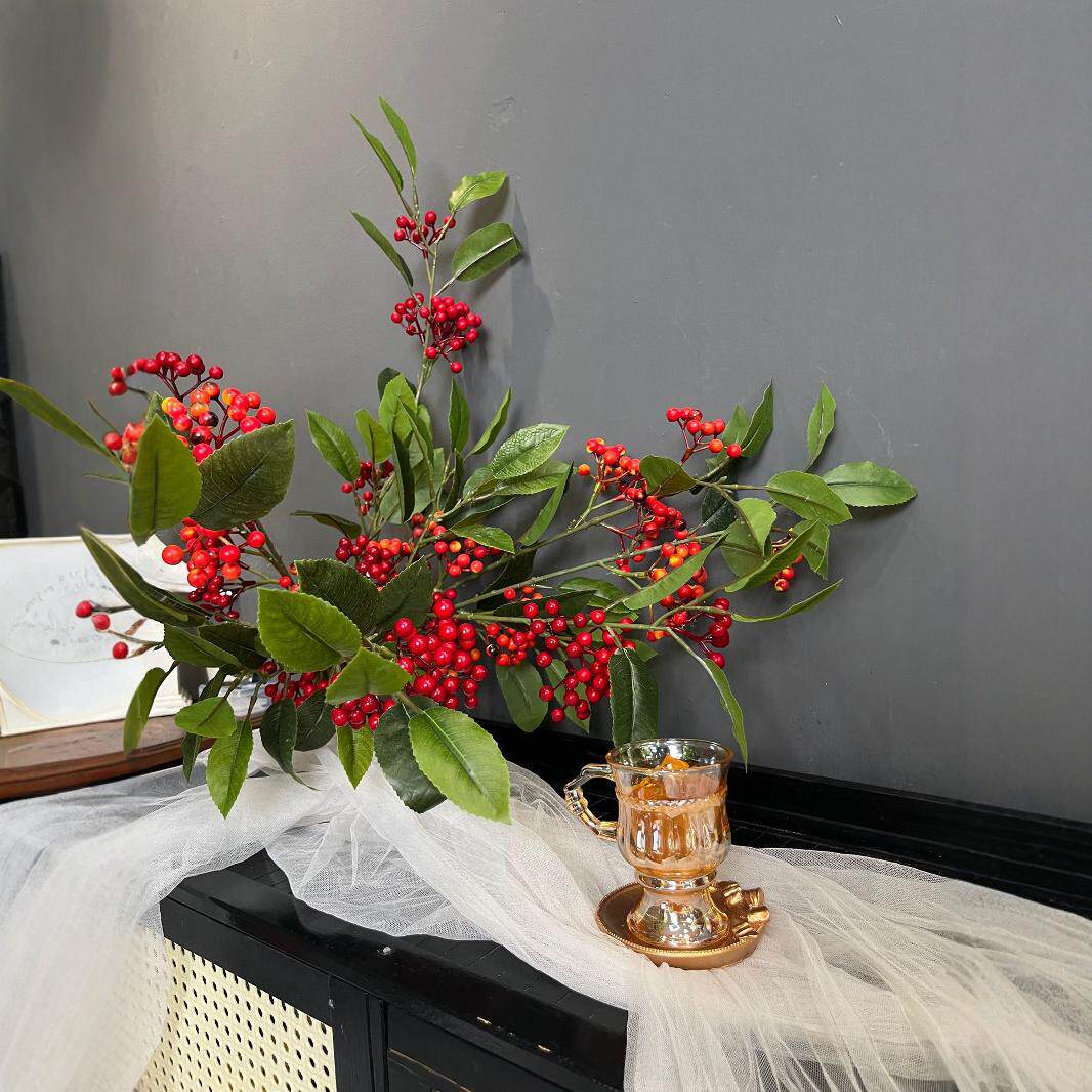 山果枝仿真花冬青红果客厅餐桌家居装饰摆件花艺摄影道具红果