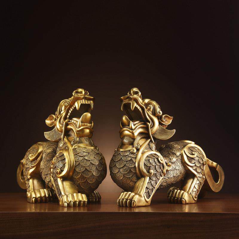 黄铜貔貅摆件一对中式家居客厅玄关办公室桌面装饰品开业乔迁礼品
