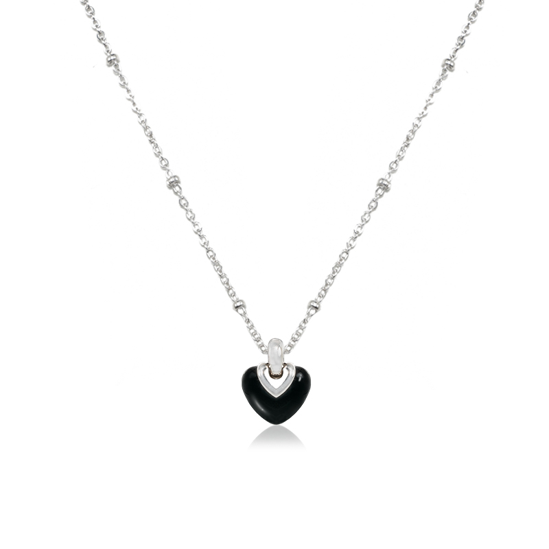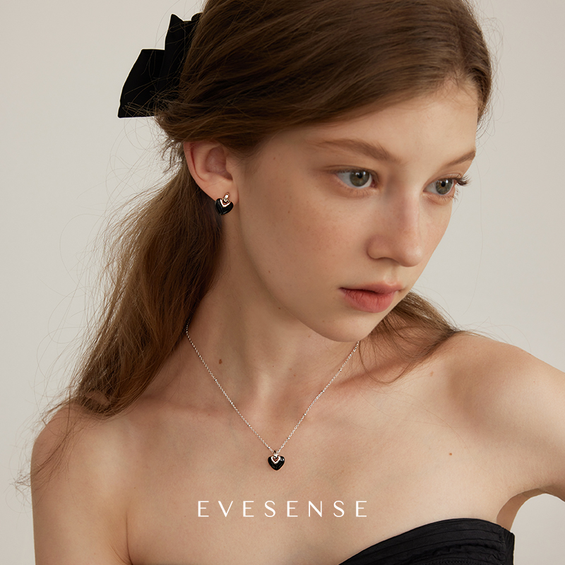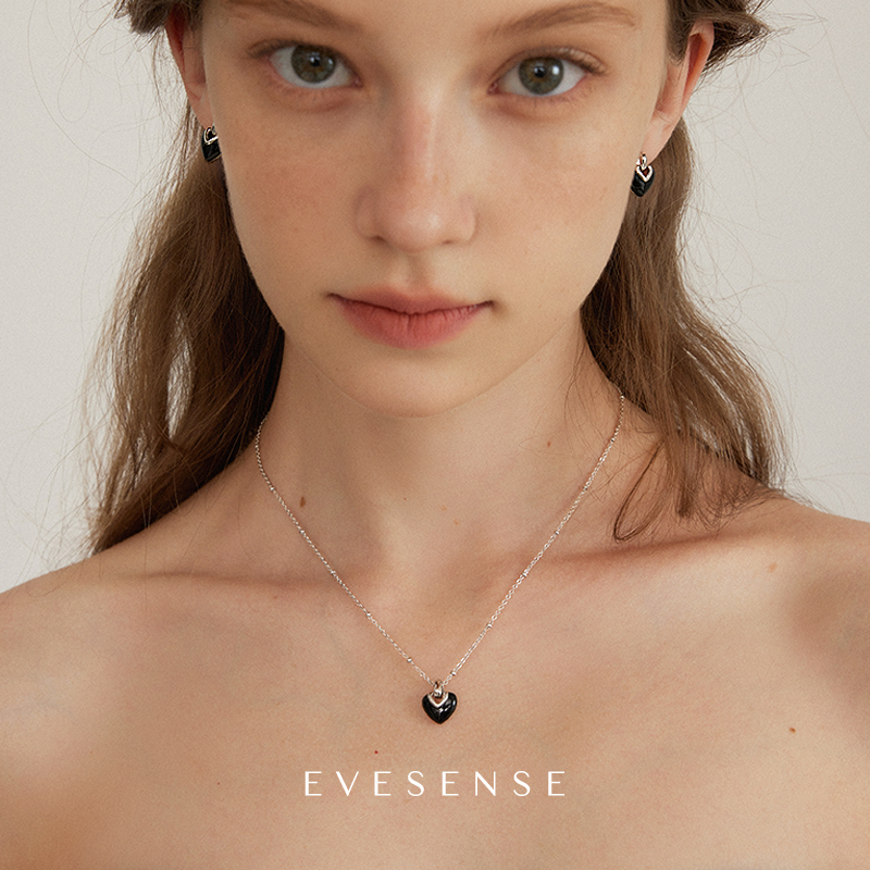 EVESENSE原创告白系列黑色珐琅爱心项链复古法式ins高级感锁骨链