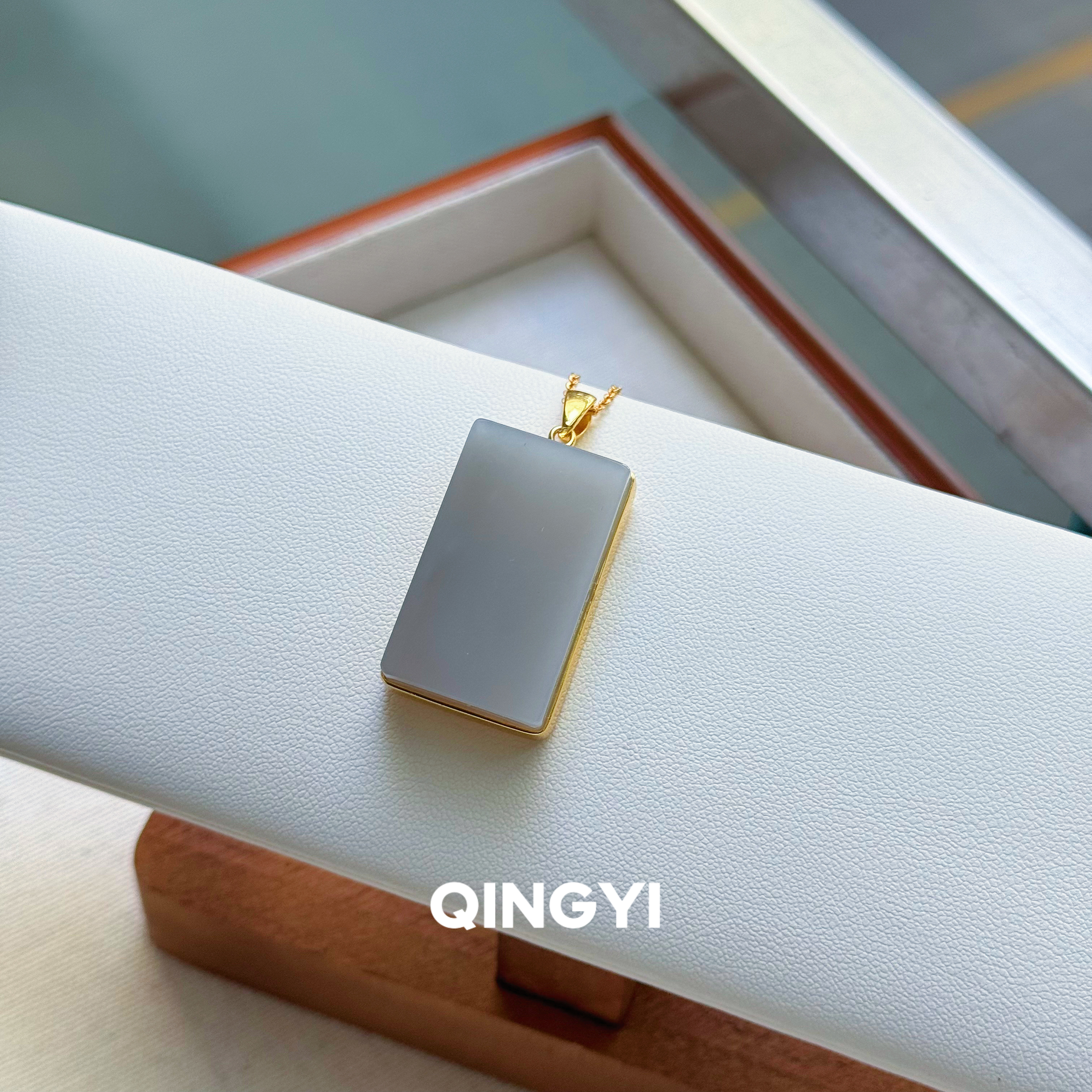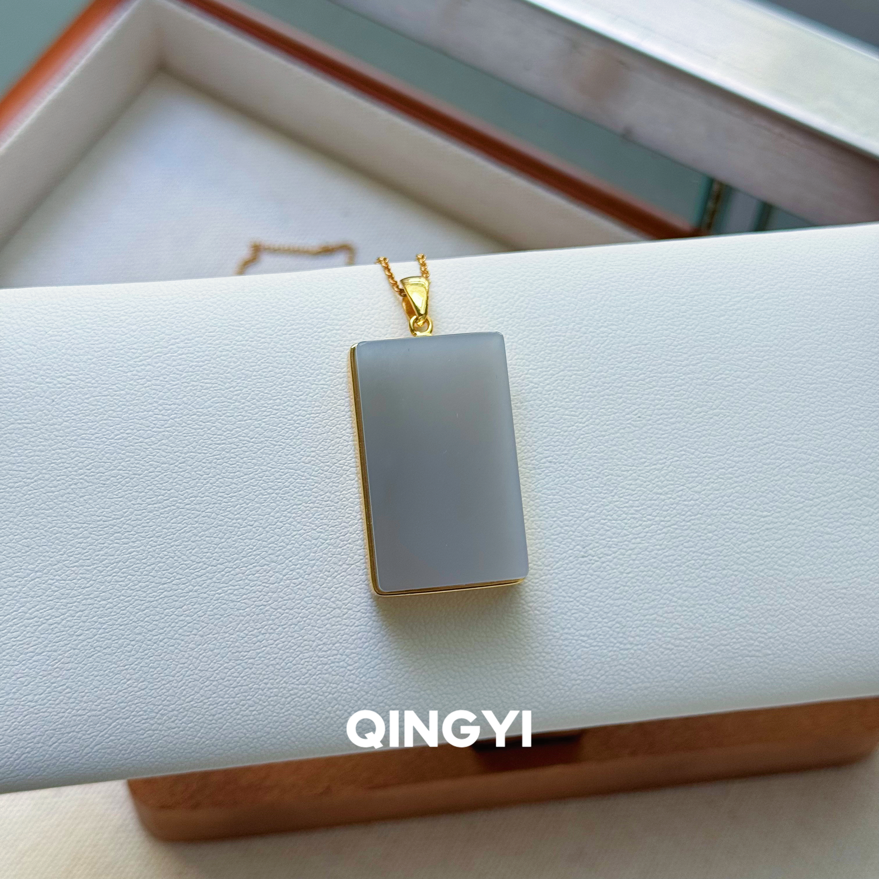 天然正品青海和田玉烟紫无事牌吊坠s925银镶女款玉石挂件玉坠礼物
