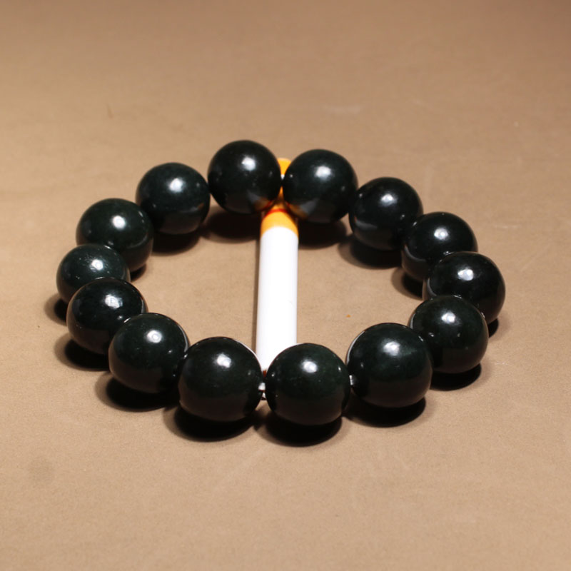 抢疯了方言和田玉精品佩戴油润细腻新疆塔县黑青玉16mm圆珠手串A0