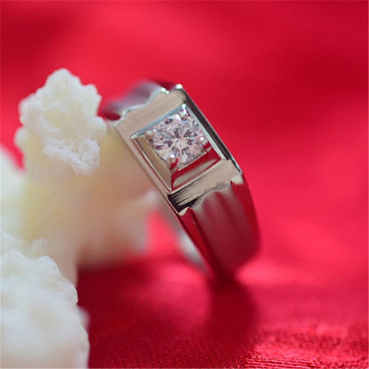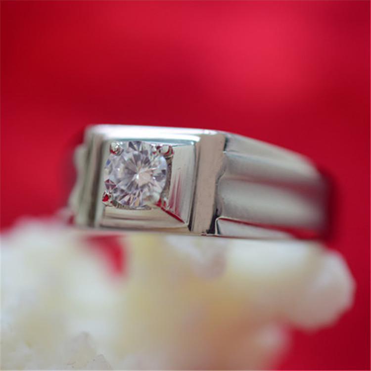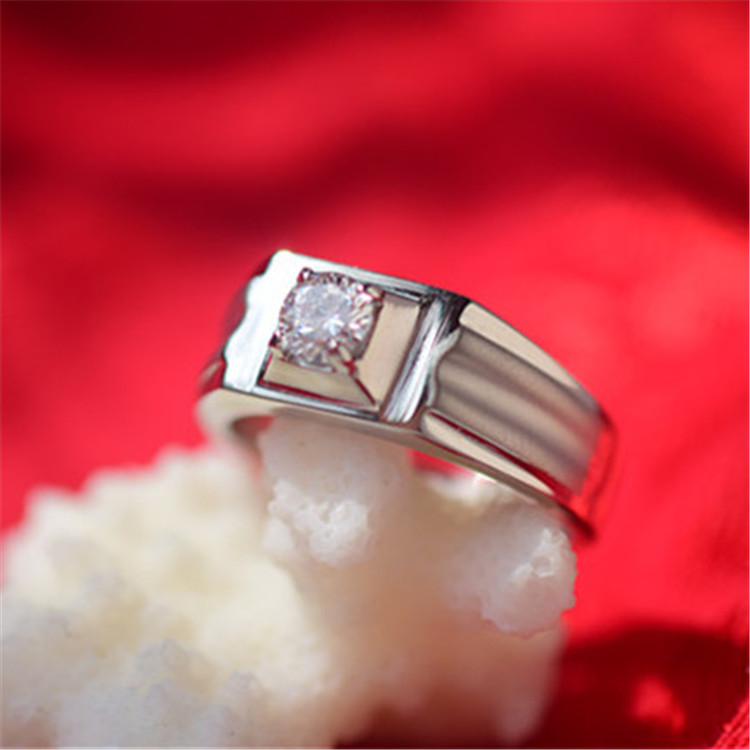 男士指环镀18K白金仿真男戒1克拉钻戒结婚钻石戒指男生日礼物刻字
