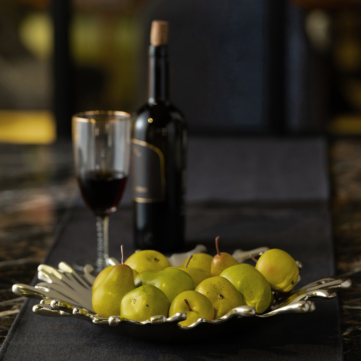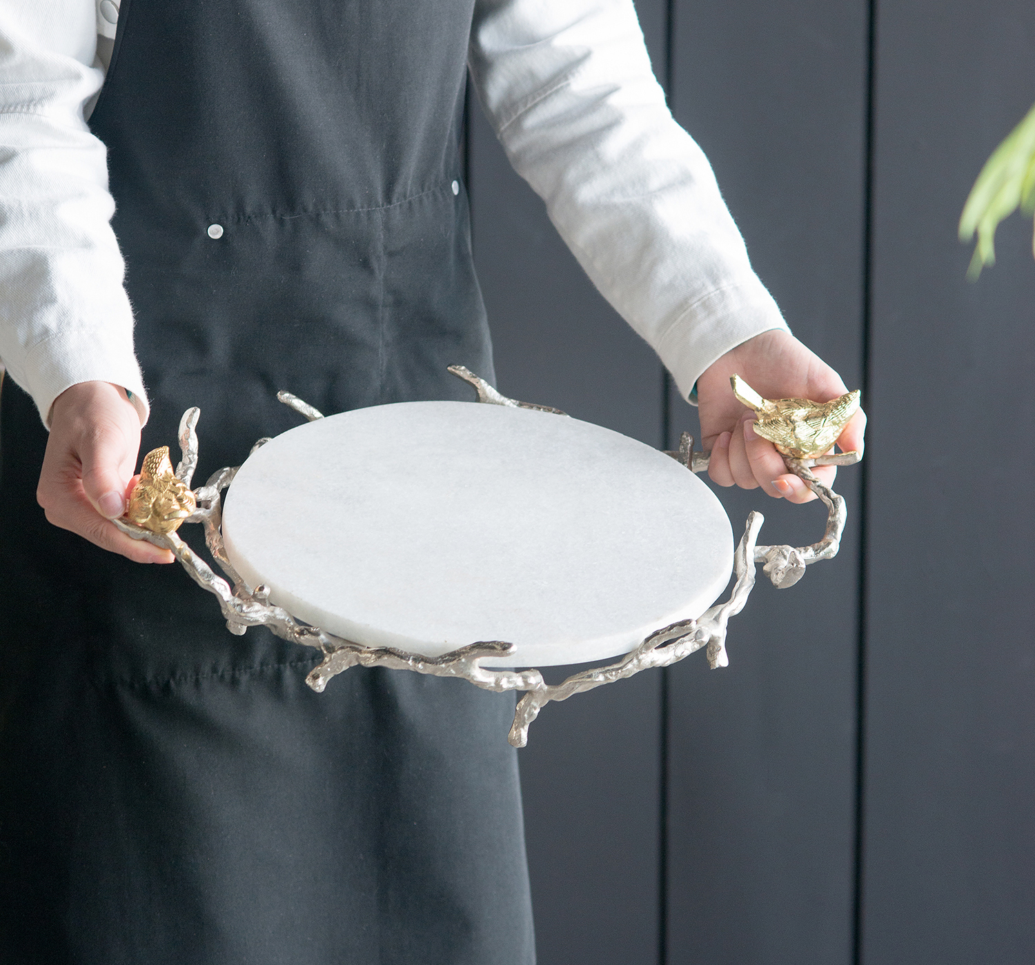 AB印度进口手工锤纹铝制品金枝鸟大理石托盘轻奢果盘桌面摆件饰品