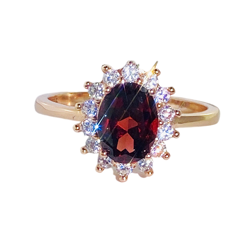 经典戴妃款天然石榴石戒指闭口S925纯银镀18K金轻奢小众高级感女