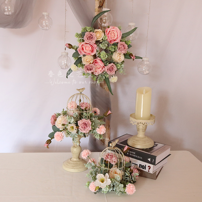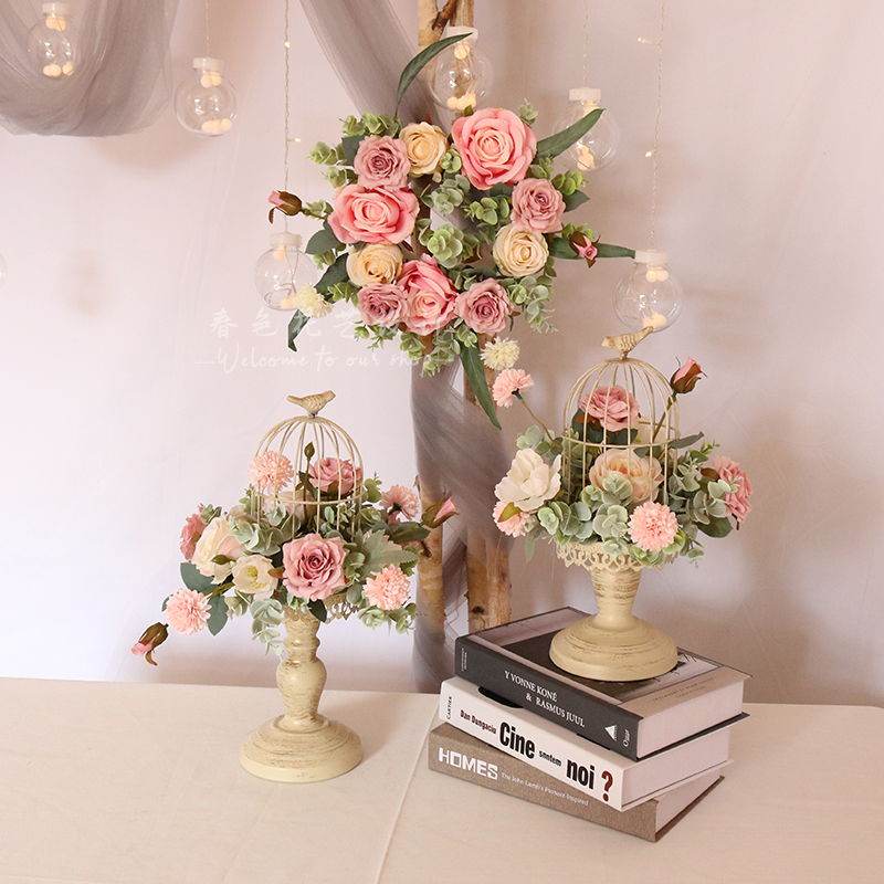 小清新仿真花花艺鸟笼盆栽摆件婚礼签到台M桌花套装家居桌面装饰
