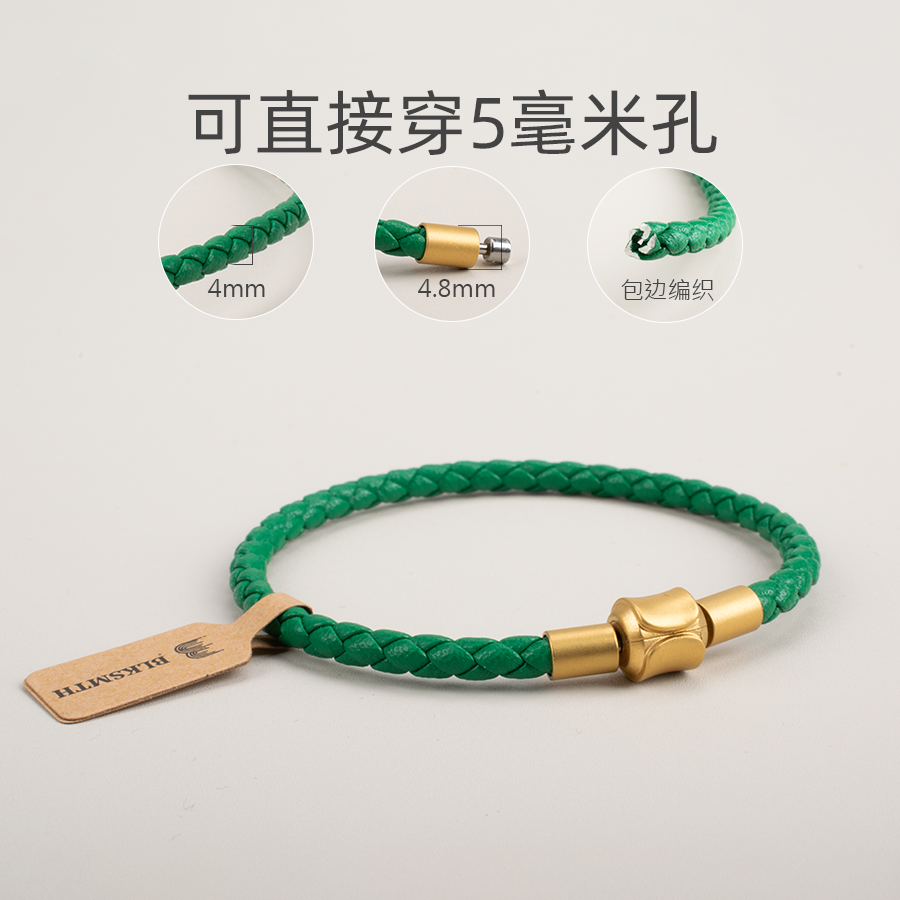 diy4MM金色转运珠日系牛皮手环复古手镯男女可穿生生大福手链