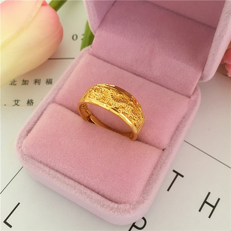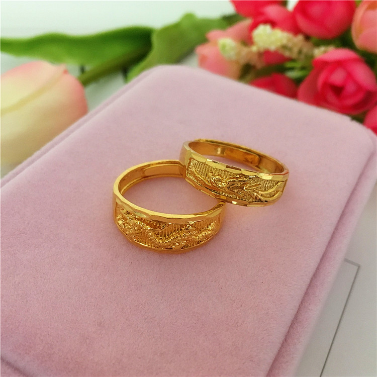 新浮雕男女龙凤戒指不掉色硬币欧币活口越南沙金镀24金首饰品霸气
