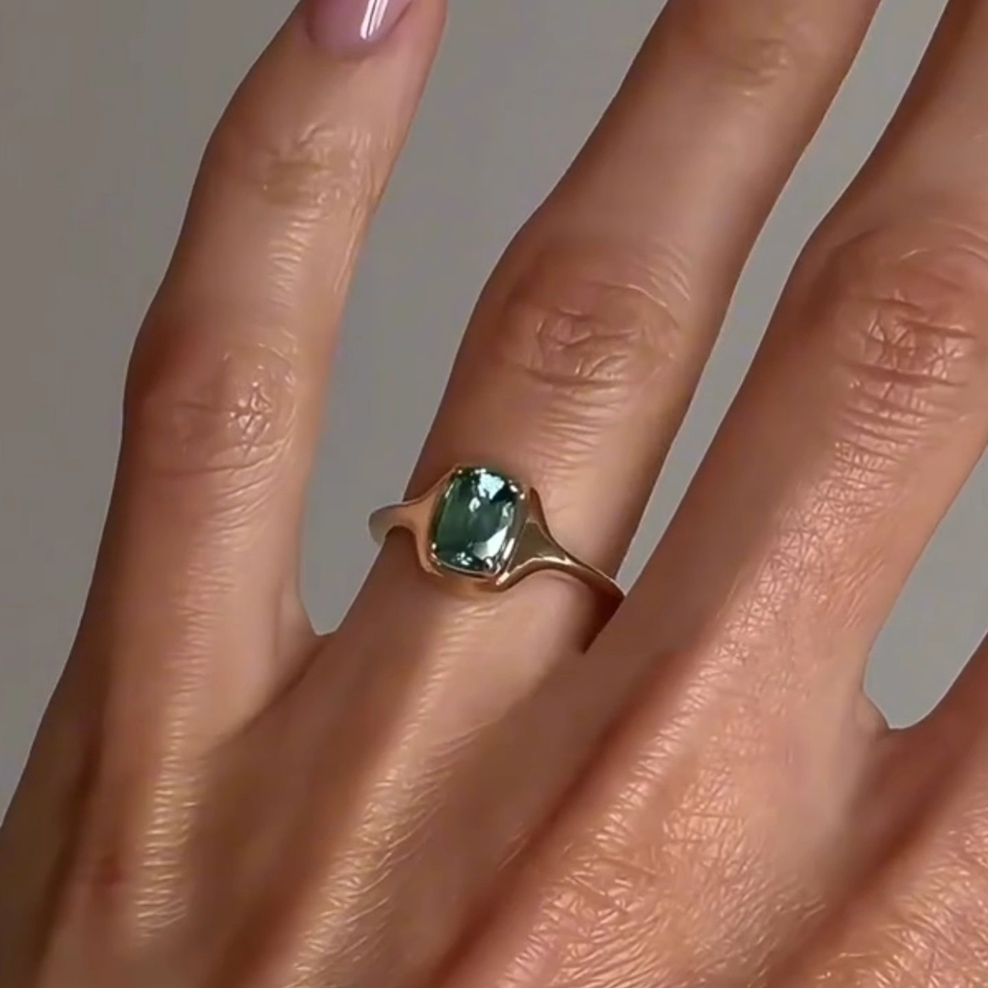 欧美风绿色方糖戒指复古轻奢小众高级感食指戒女2025新款爆款指环