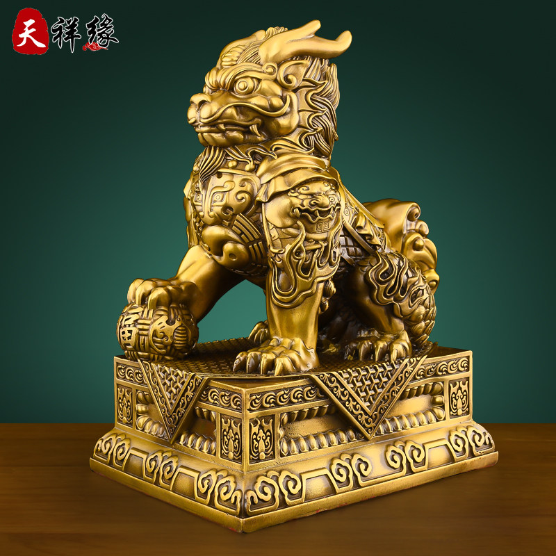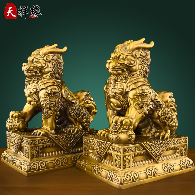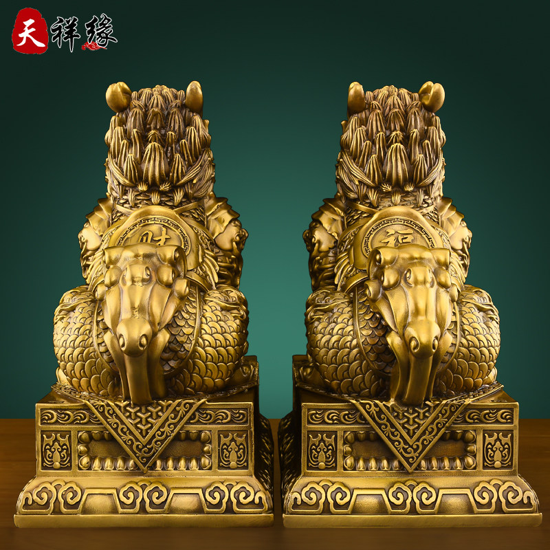 铜麒麟摆件一对麒麟将军招财聚财客厅玄关门口镇宅开业送礼大号
