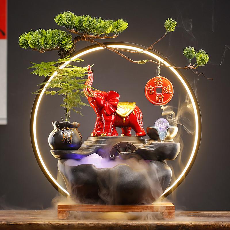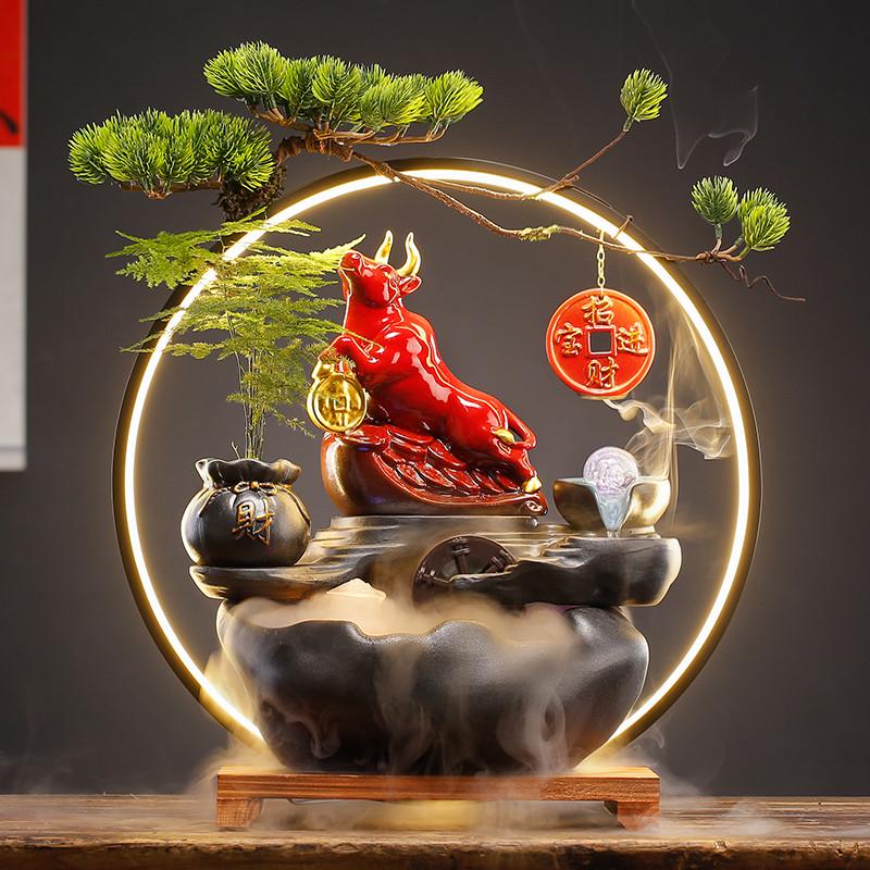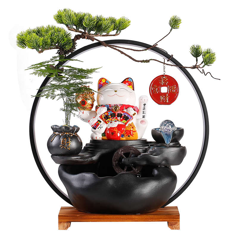 中式流水生财摆件家居客厅办公室桌面创意陶瓷招财猫装饰开业礼品