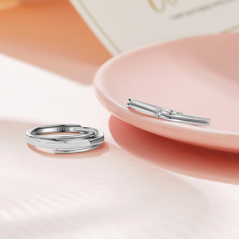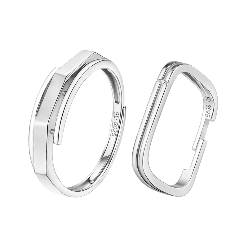 softdora/索缇朵小方戒情侣对戒S925银钻石戒指男女款一对送女友