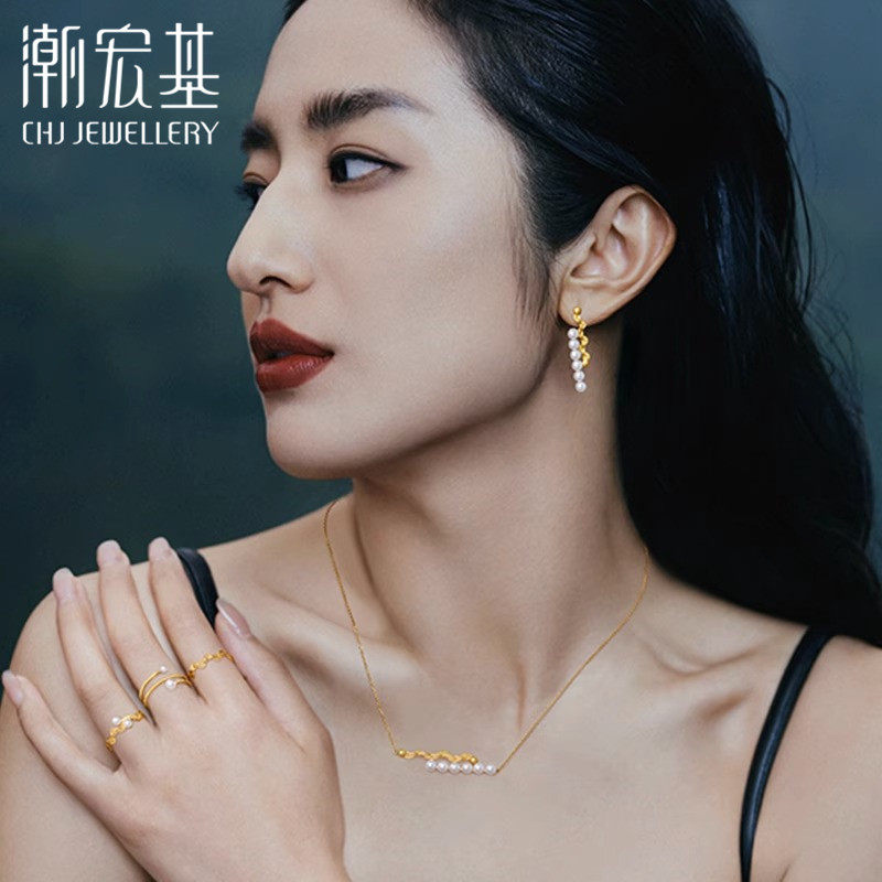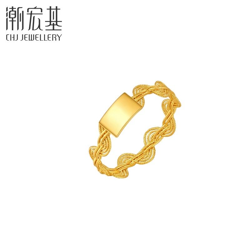 潮宏基 花丝云起 足金花丝戒指黄金祥云几何设计