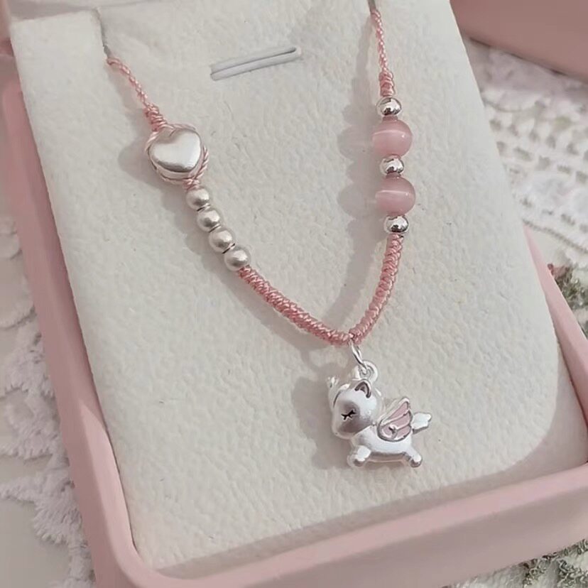 足银999独角兽可爱卡通吊坠纯银项链生肖马锁骨链送女友生日礼物