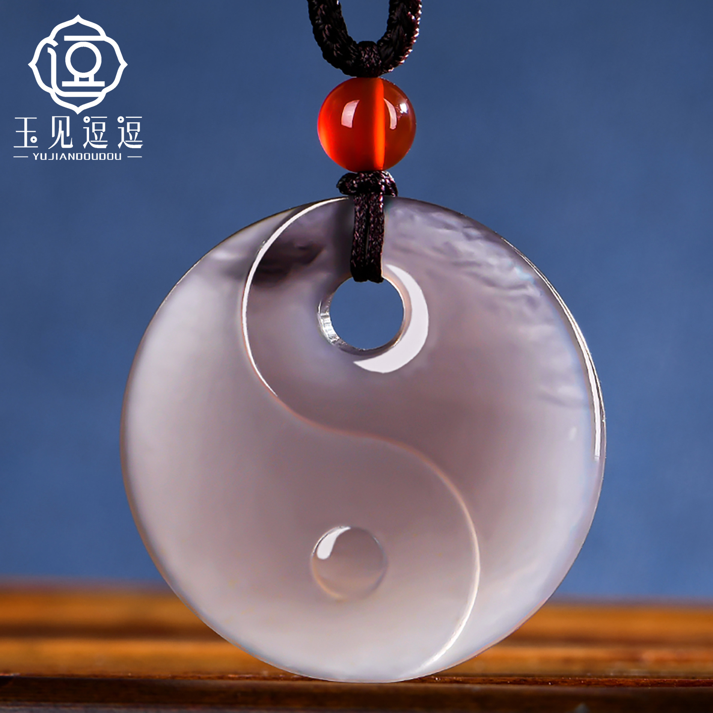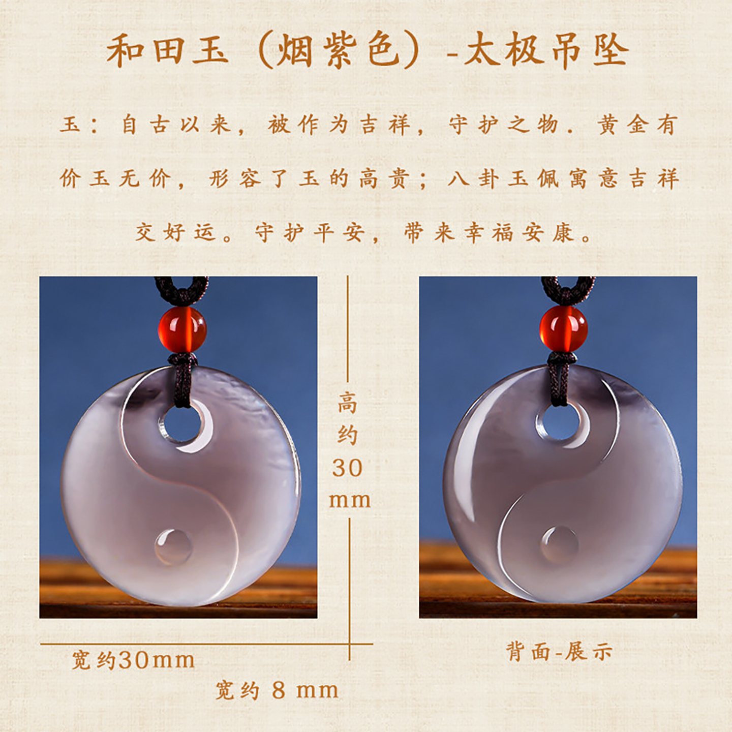 新疆和田玉烟紫色玉太极八卦平安扣玉吊坠男女士款玉坠挂件玉佩
