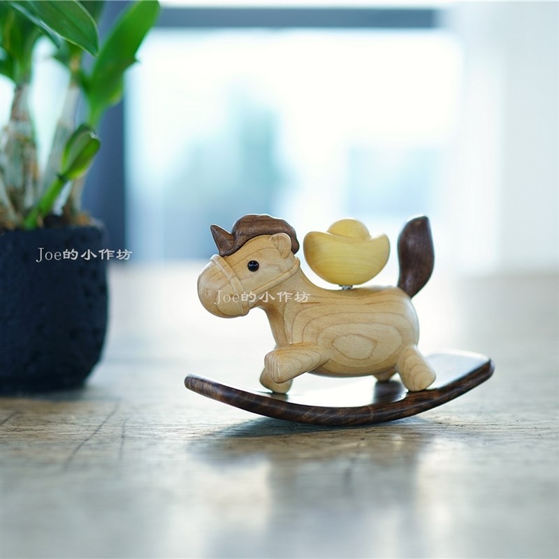 元宝摇摇马实木摆件可爱创意家居装饰品马上P发桌面摆件车载送礼