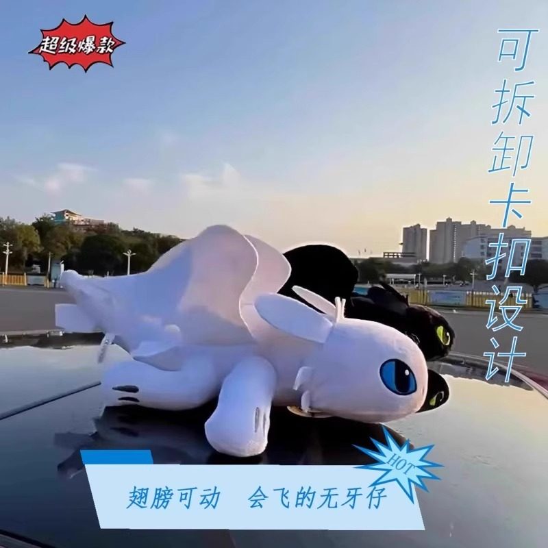 翅膀可动尾部车外无牙仔车顶挂件摩托机车装饰摆件玩偶公仔小飞龙