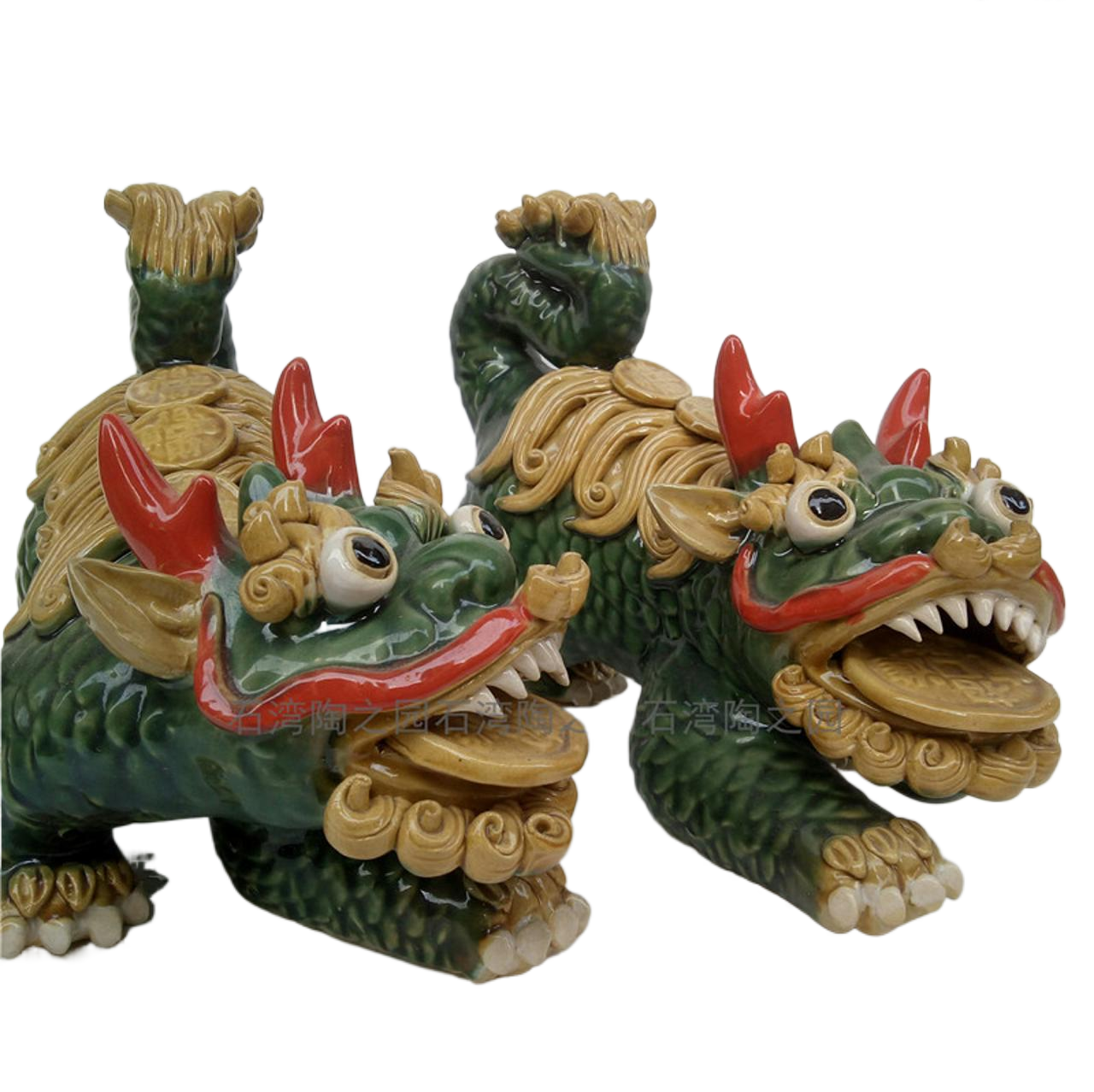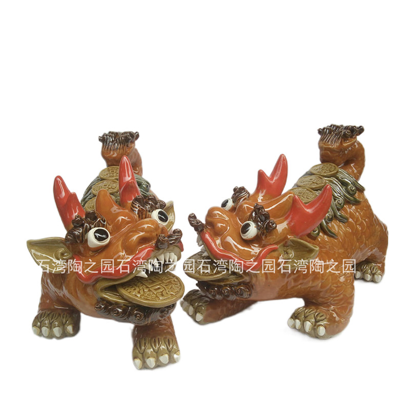 石湾公仔陶瓷家居装饰摆件吉祥物客厅桌面地柜镇宅七彩红角火麒麟