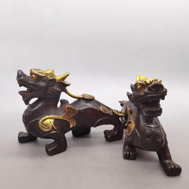 古韵古铜器紫铜色鎏金貔貅一对家居摆玩仿AL634452古鎏金件貔斋貅