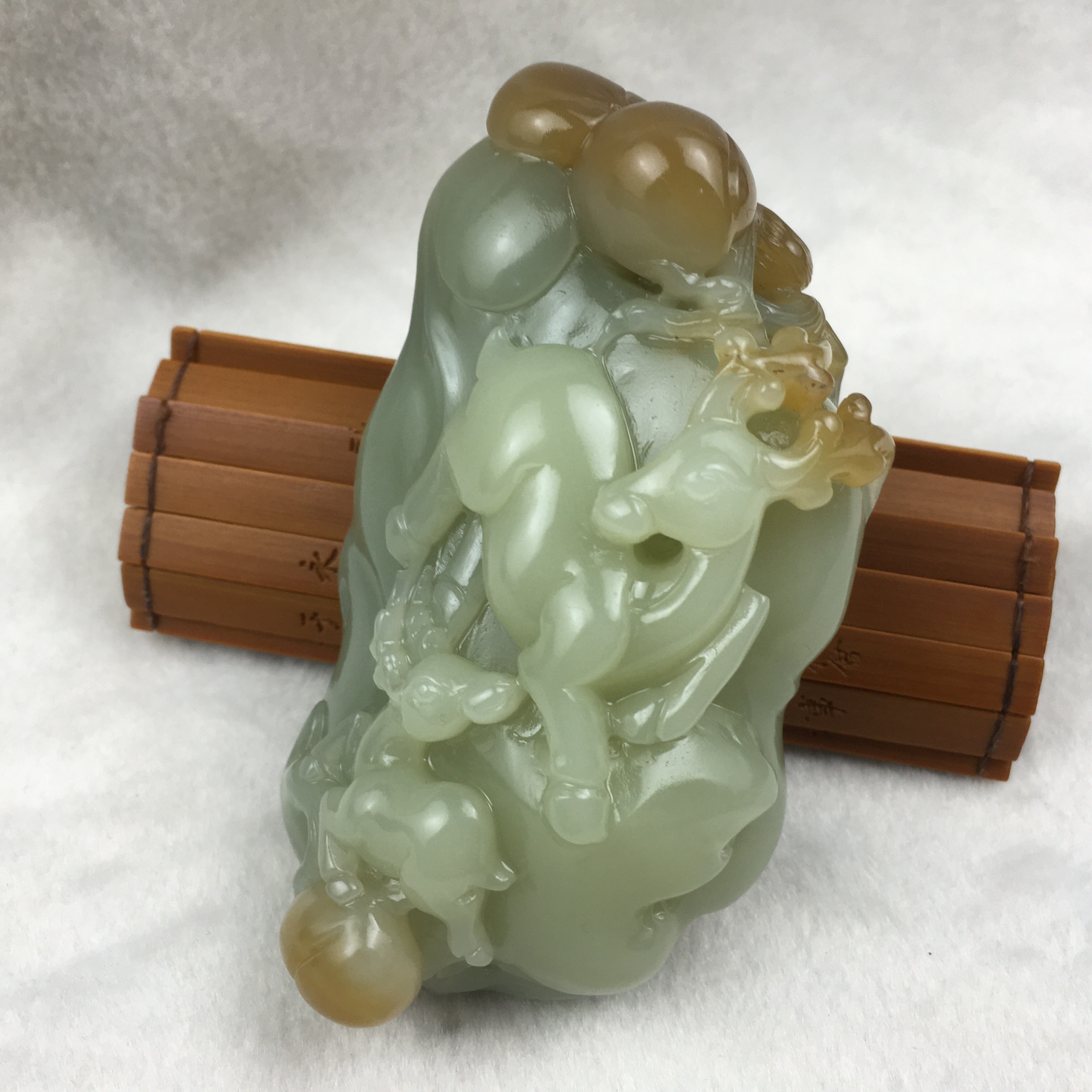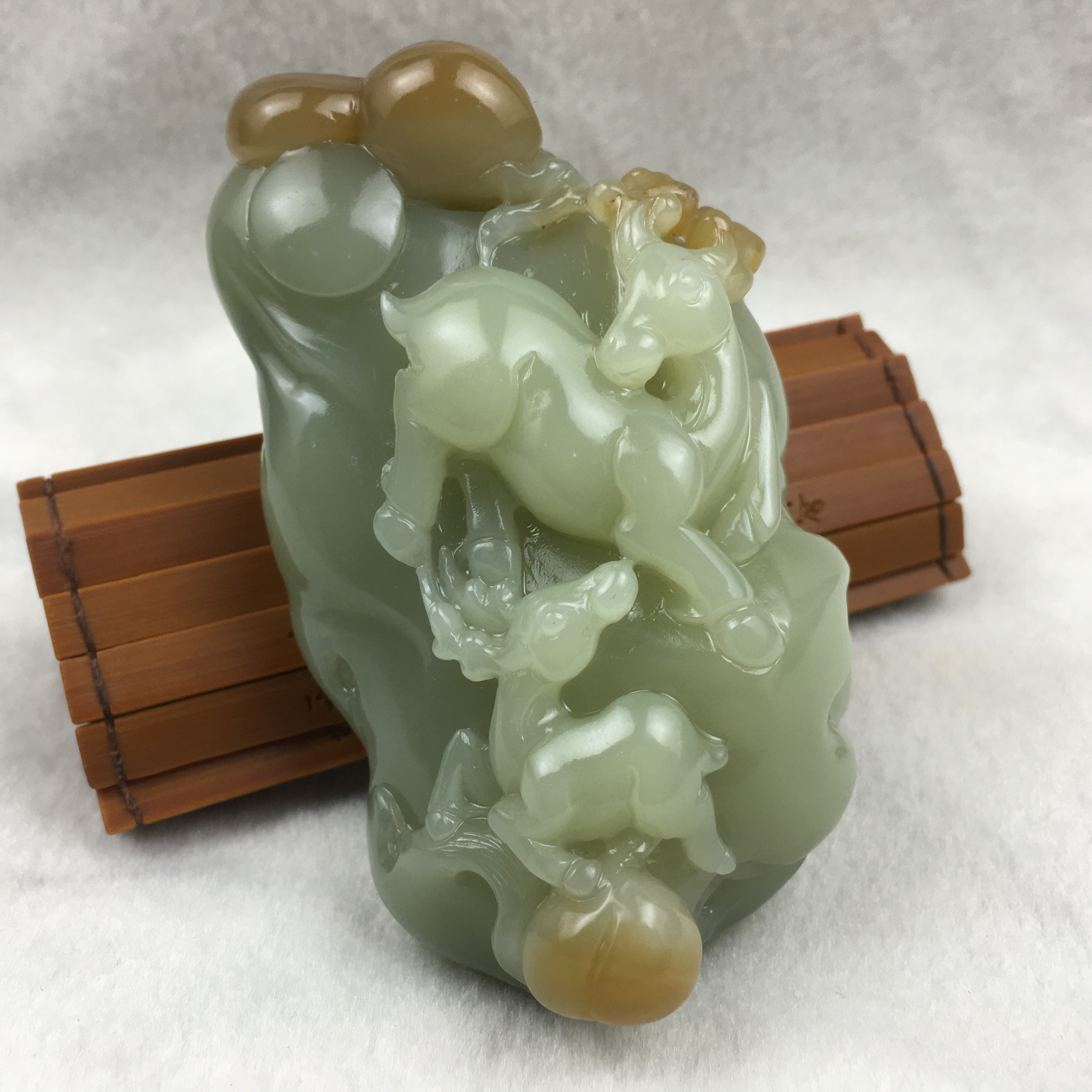 新疆和田玉若羌黄口料带红糖巧雕路路通