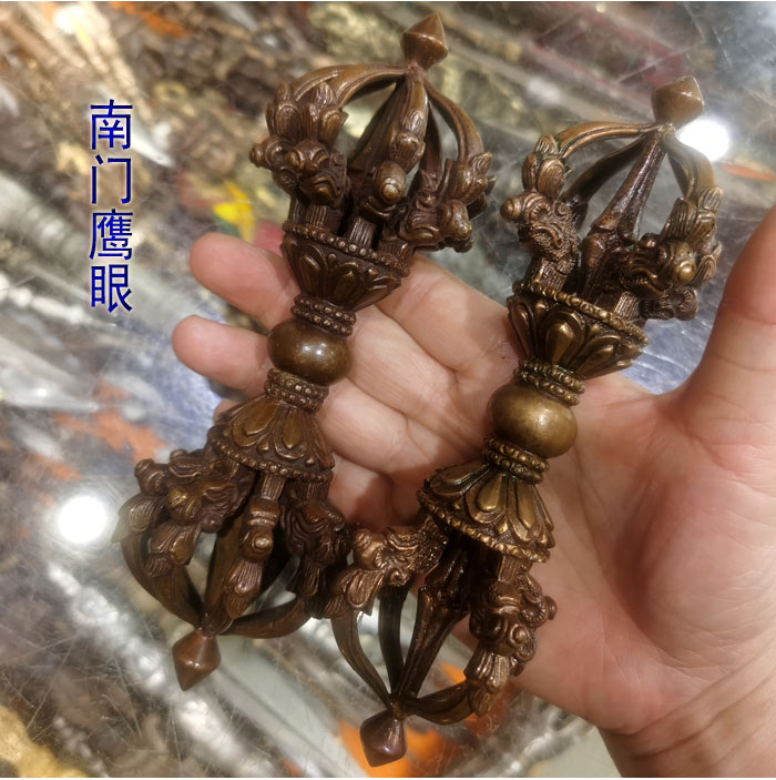 尼泊尔紫铜五股金刚杵 羯摩杵 纯铜修法莲花宝杵 九股杵 羯磨杵