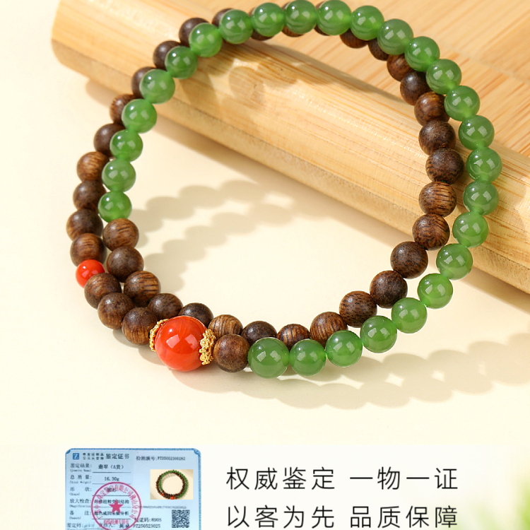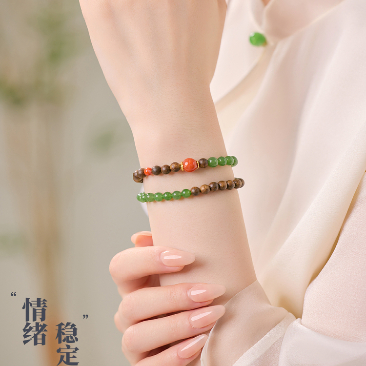 天然沉香和田碧玉手串女南红转运珠多圈高端木质南红手链生日礼物