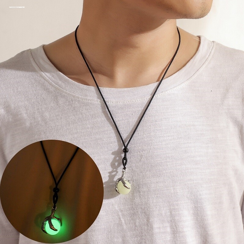 圆柱珠形龙爪琉璃吊坠复古嘻哈鹰爪夜光项链男中性饰品百搭时尚