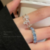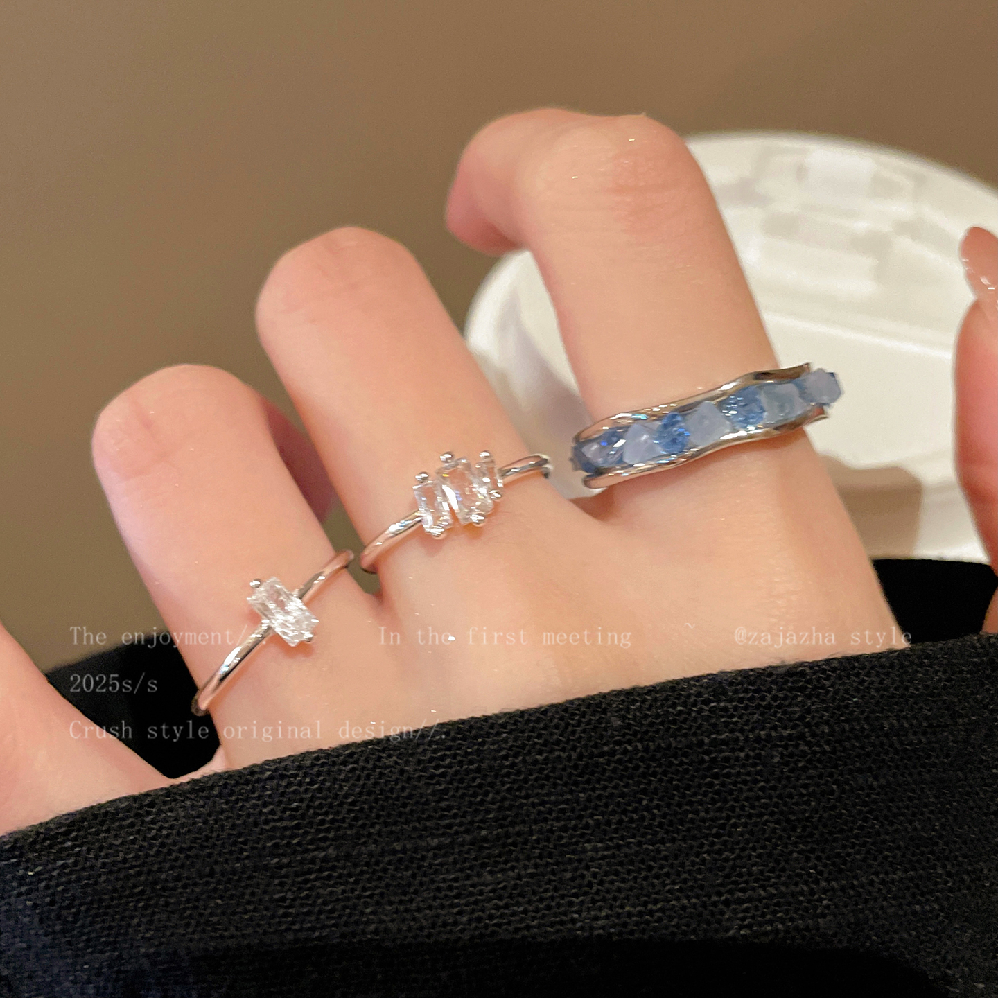 蓝色锆石戒指女2025新款小众设计轻奢高级感食指戒时尚叠戴指环潮