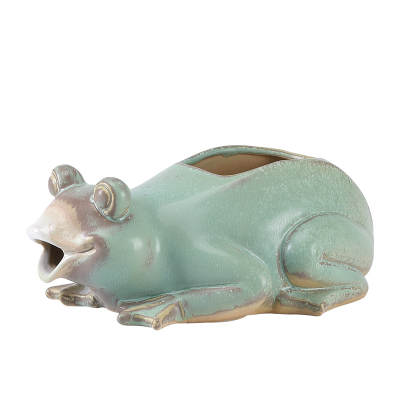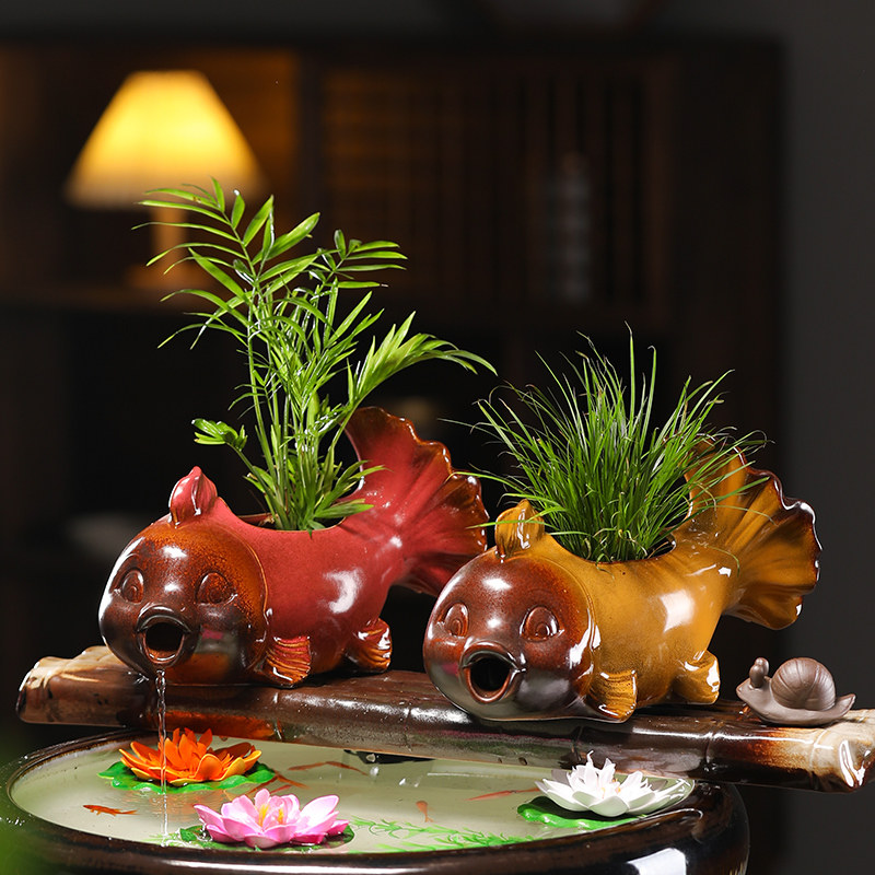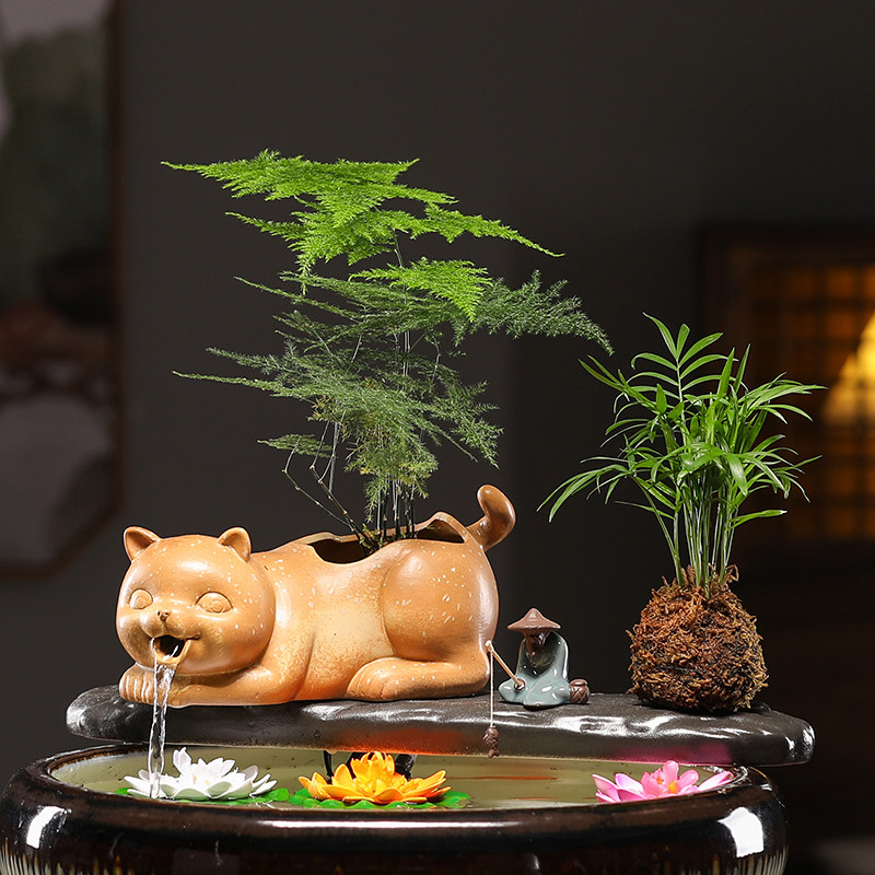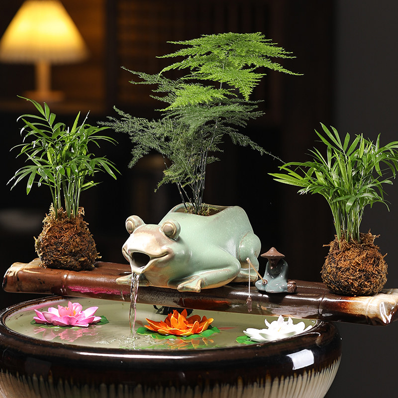 可爱大象青蛙流水陶瓷配件造景古法养鱼缸循环水配件过滤材料容器