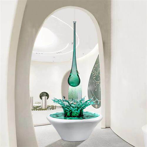 酒店大堂售楼处玻璃钢水滴雕塑不锈钢大型落地摆件金属水纹装饰品