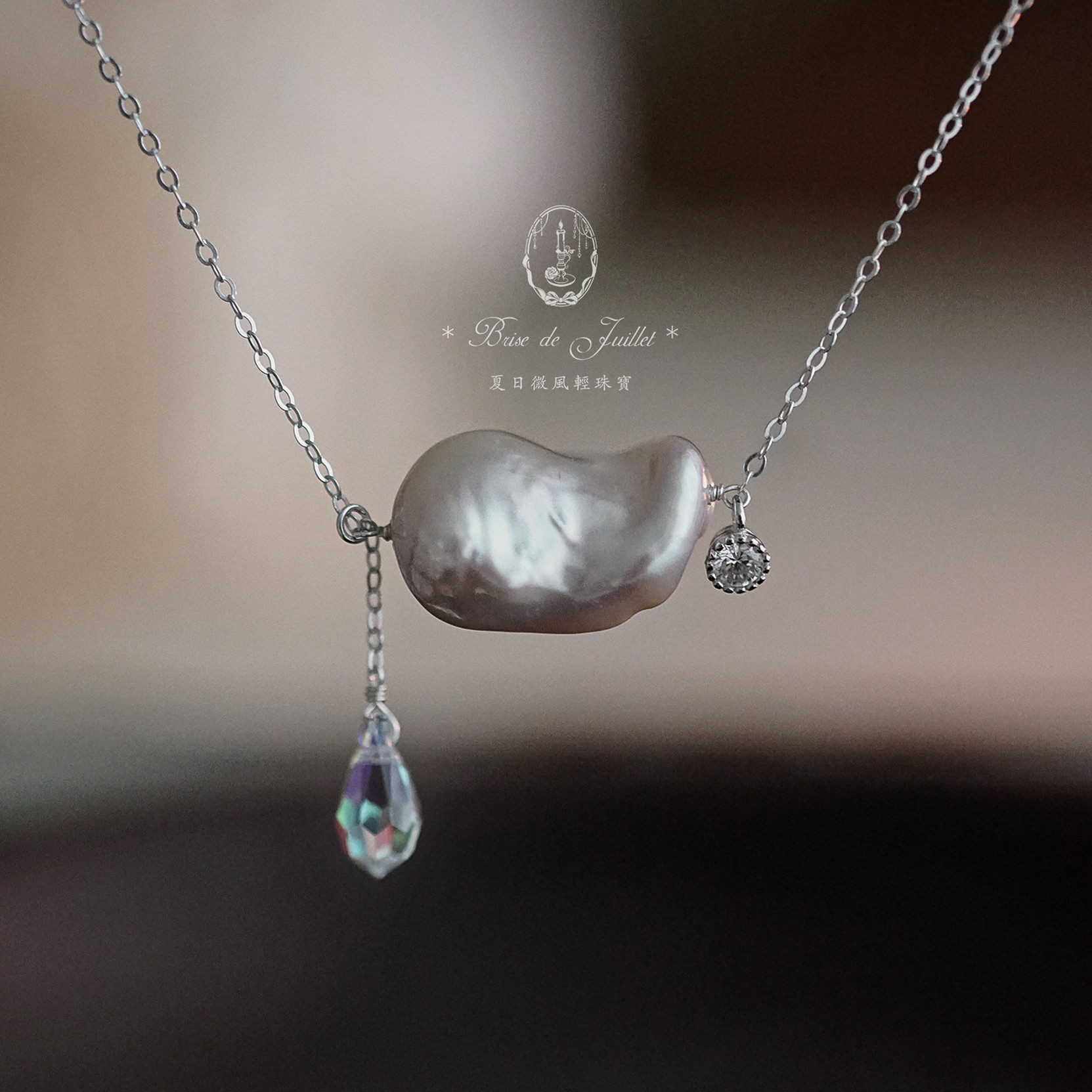 夏日微风/美人鱼。大巴洛克鱼尾珍珠项链925纯银原创小众气质高级