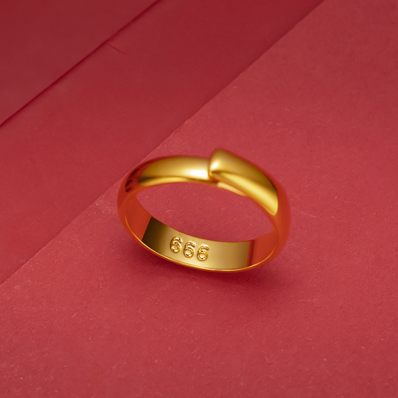 越南沙金戒指女素圈光面男女款情侣亮面纯黄金色不掉色开口可调节