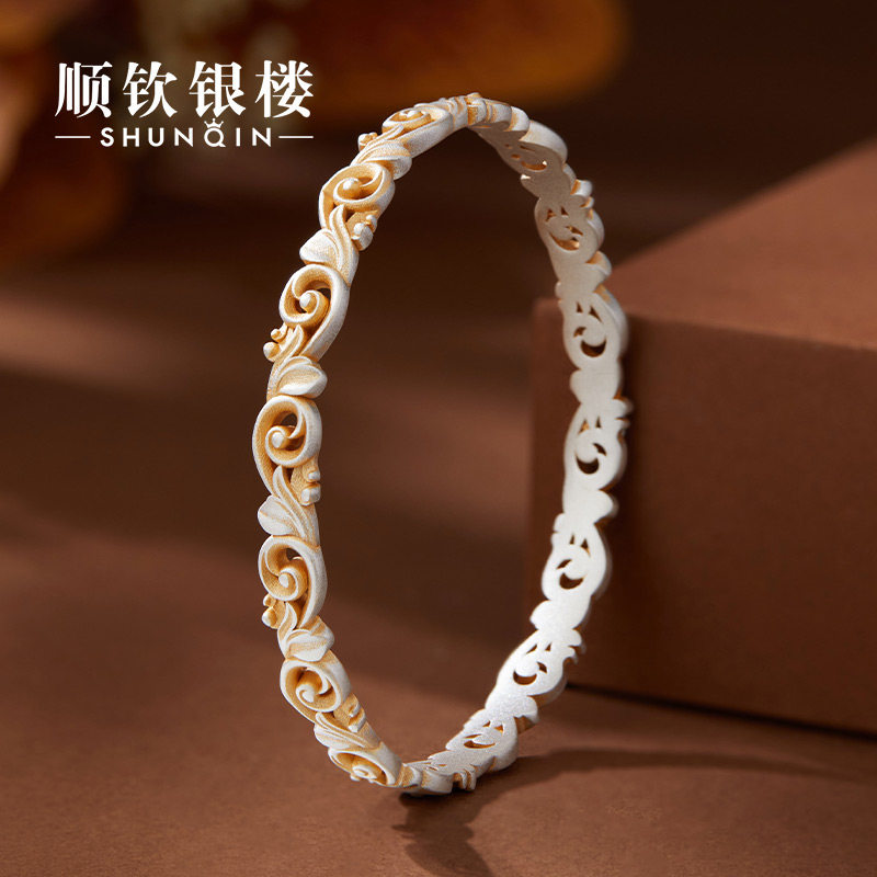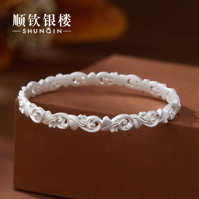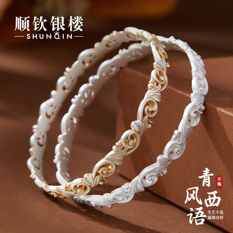 顺钦银楼足银9999青风西语手镯女高级感雕花镂空设计小众银手镯