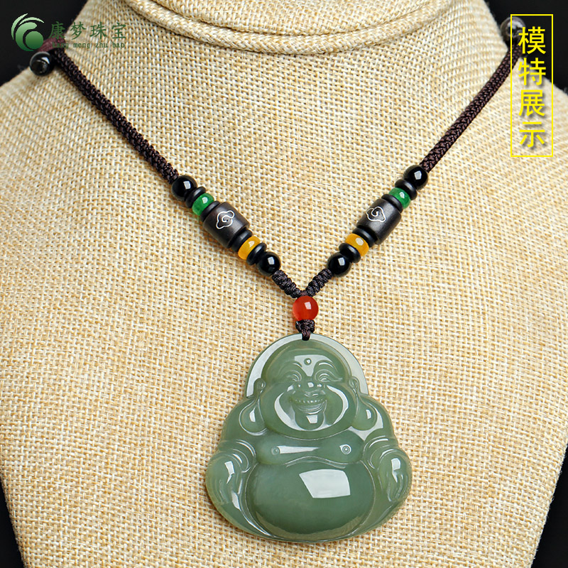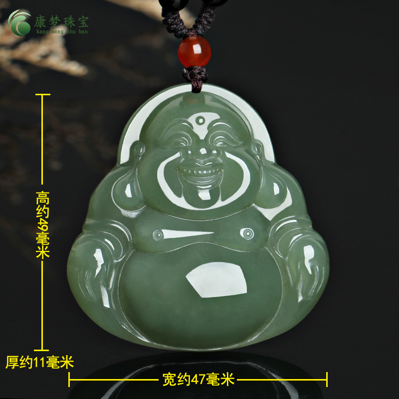 天然新疆和田玉佛公吊坠青玉弥勒佛挂件女士款玉饰品玉佩项坠玉牌