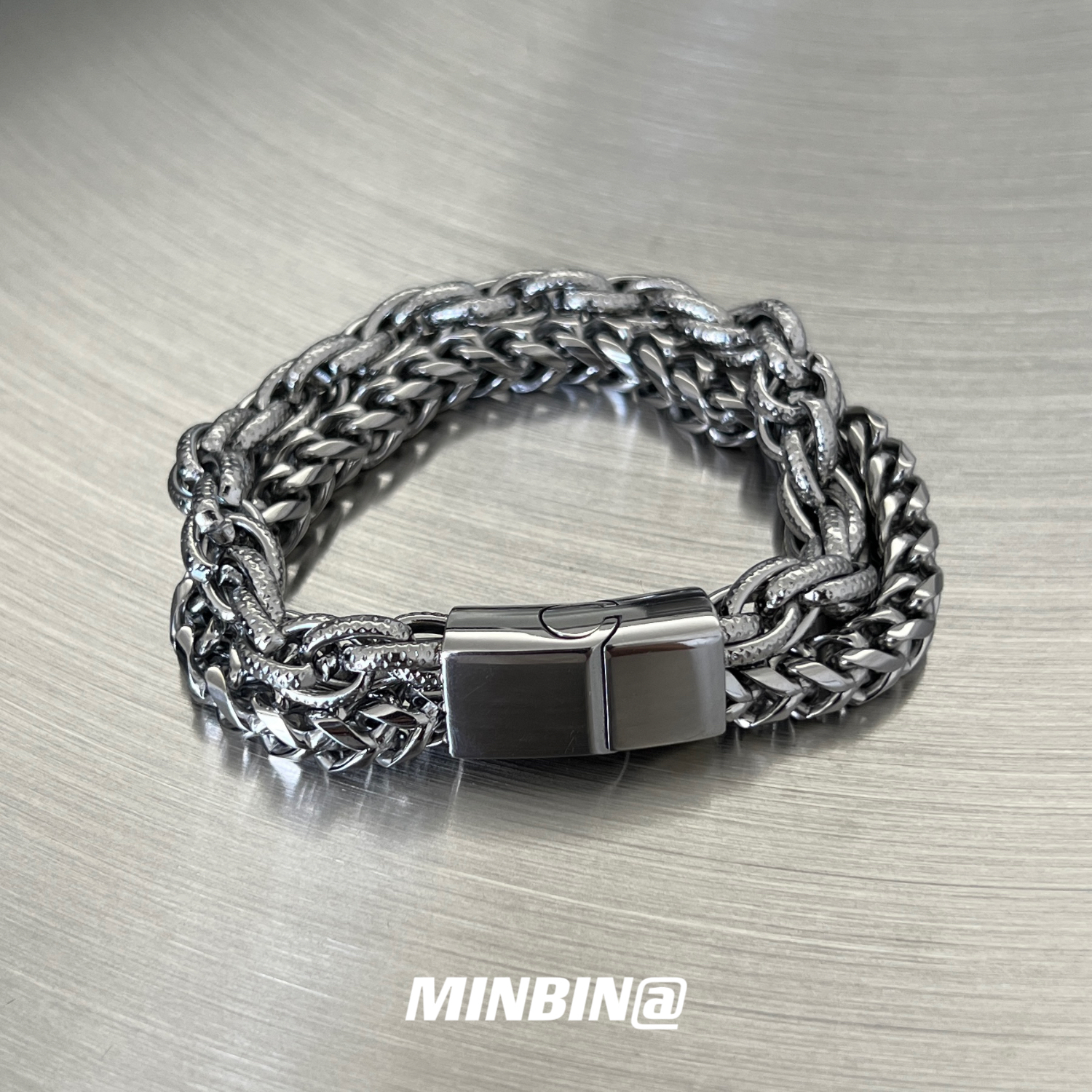双层钛钢手链男士小众高级冷淡风欧美嘻哈设计感男女手饰品不掉色