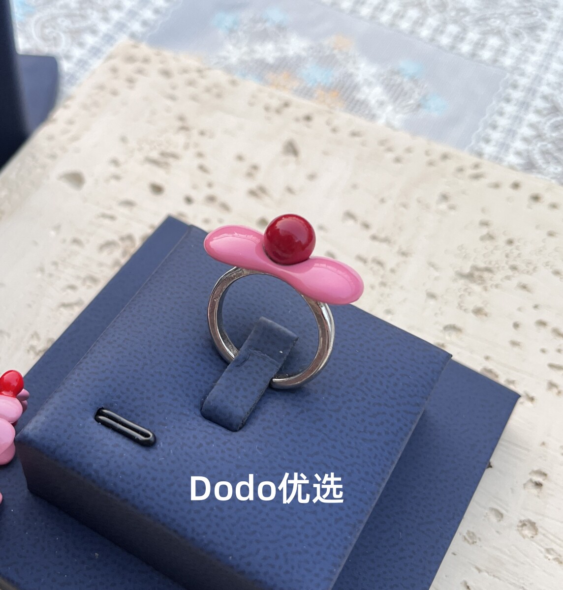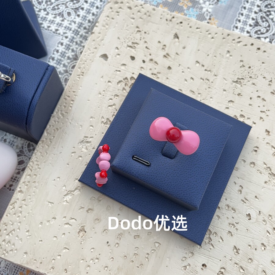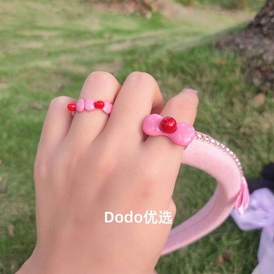玫粉色豆豆蝴蝶结戒指个性开口春夏可爱少女珐琅新潮博主款少女风