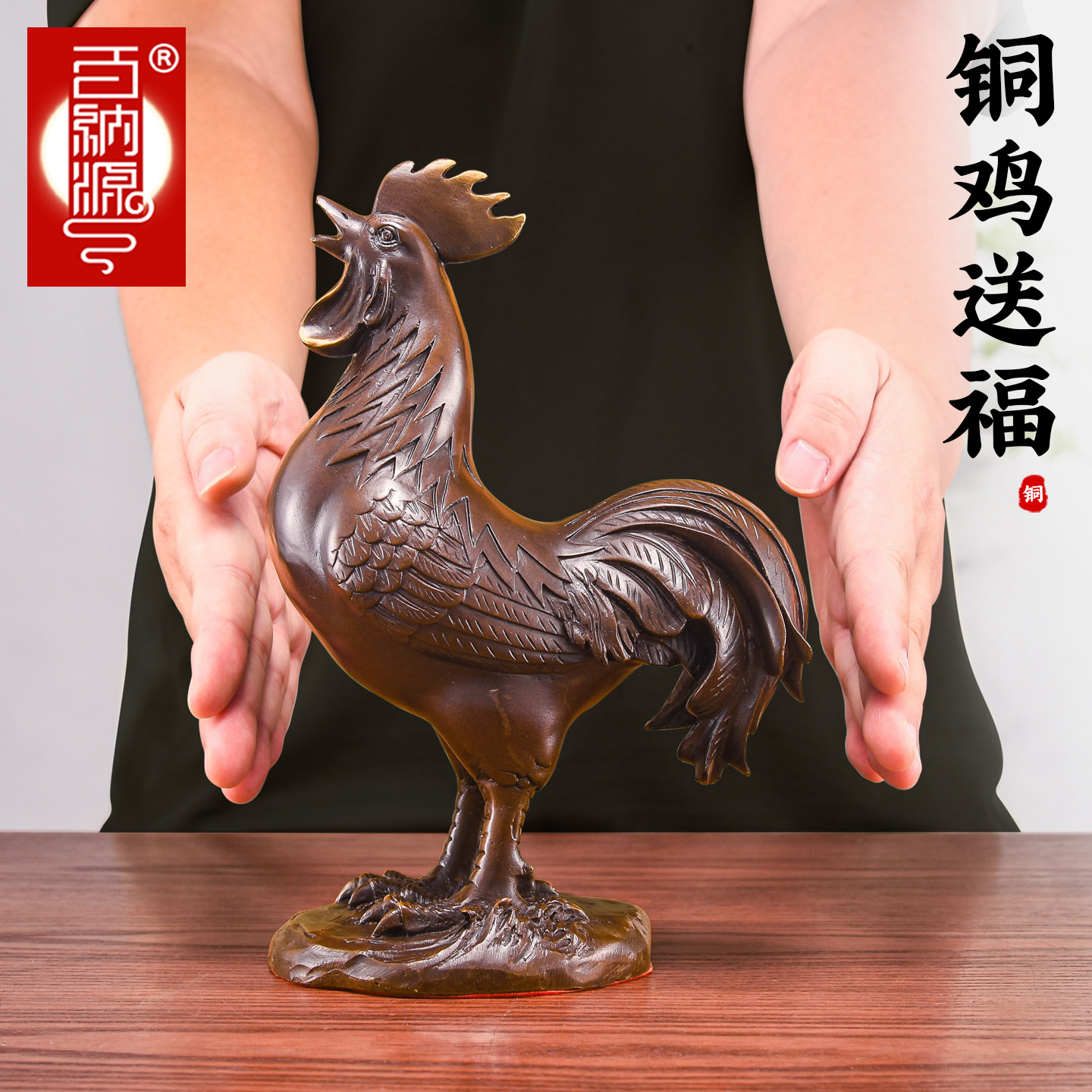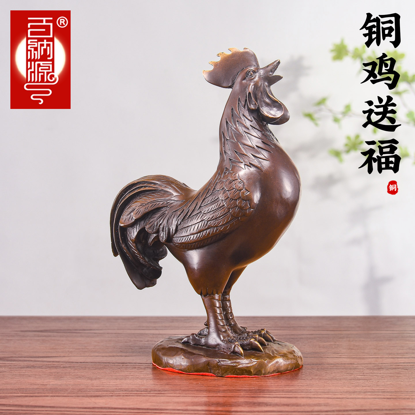 铜公鸡摆件纯黄铜生肖鸡招财金鸡报晓福鸡客厅玄关安宅生财吉祥物