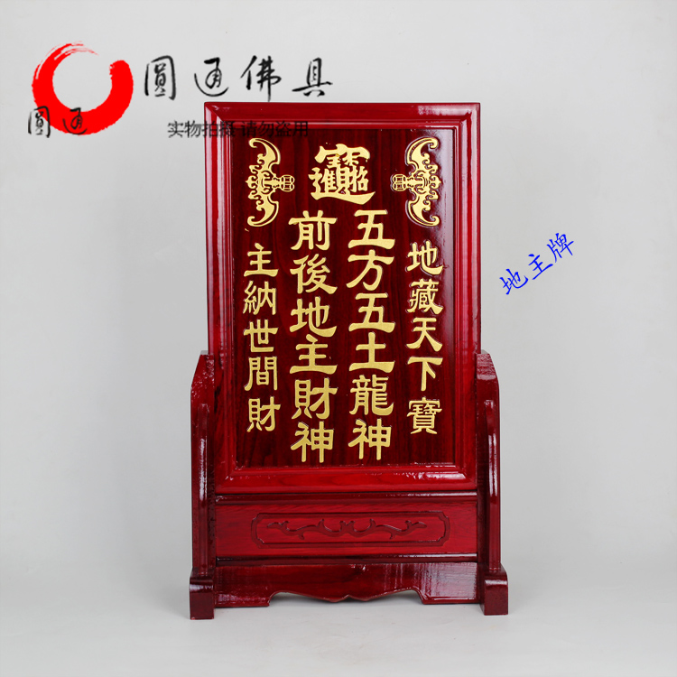 圆通佛具地主牌位架实木红木土地神位牌贴金字祖先神主牌供奉家用