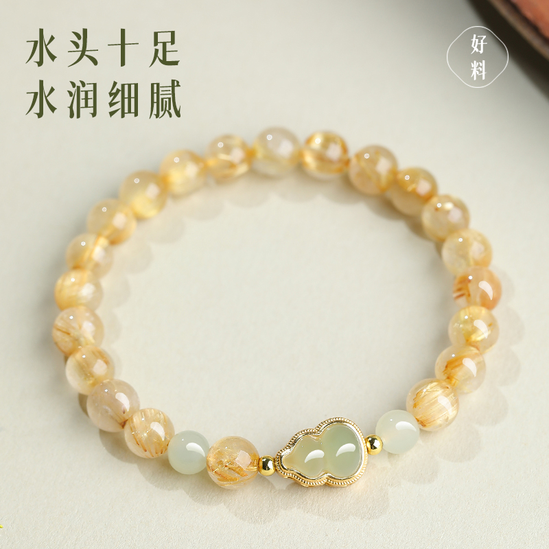 天然金发晶水晶手串晴水葫芦手链女款真品官方旗舰店玉石串珠手饰