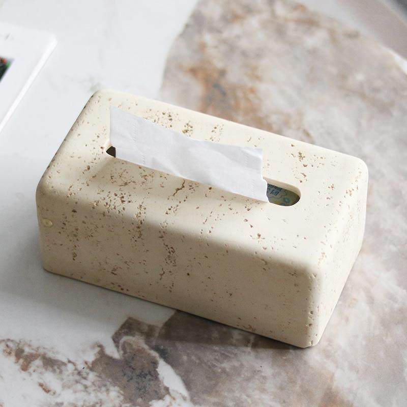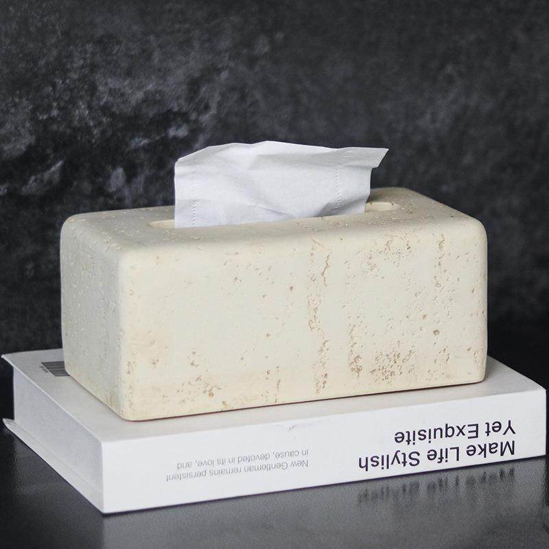 侘寂ZQT仿黄石纸巾盒厅摆件创风意家居客样板间售洞楼处抽纸盒装